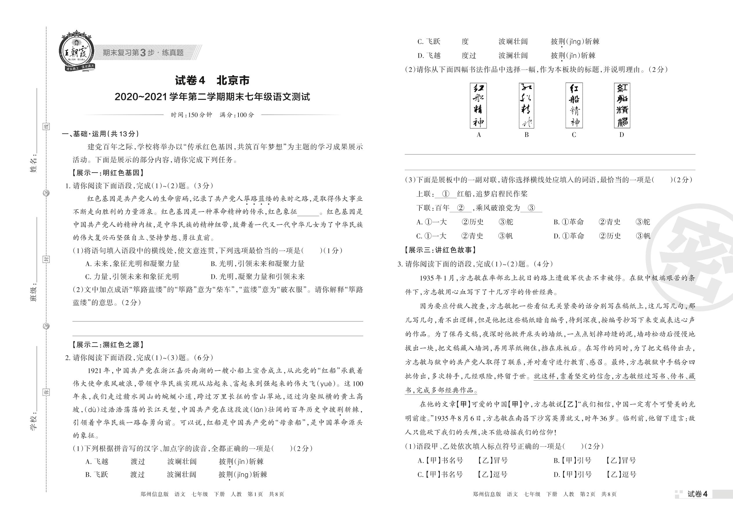 北京市2020~2021学年第二学期期末七年级语文测试(人教版)【4】