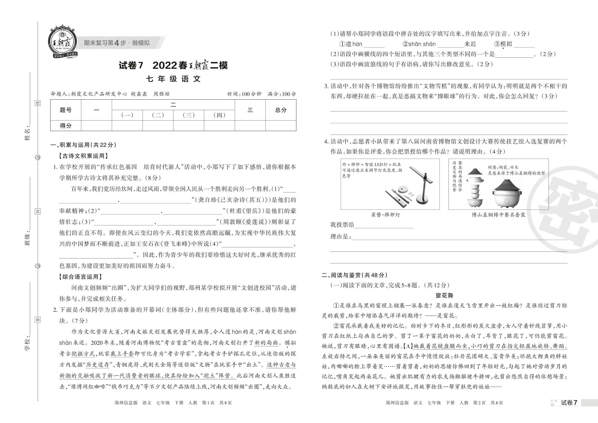 王朝霞期末模拟卷七年级下册语文(人教版)_R220323162544992【7】