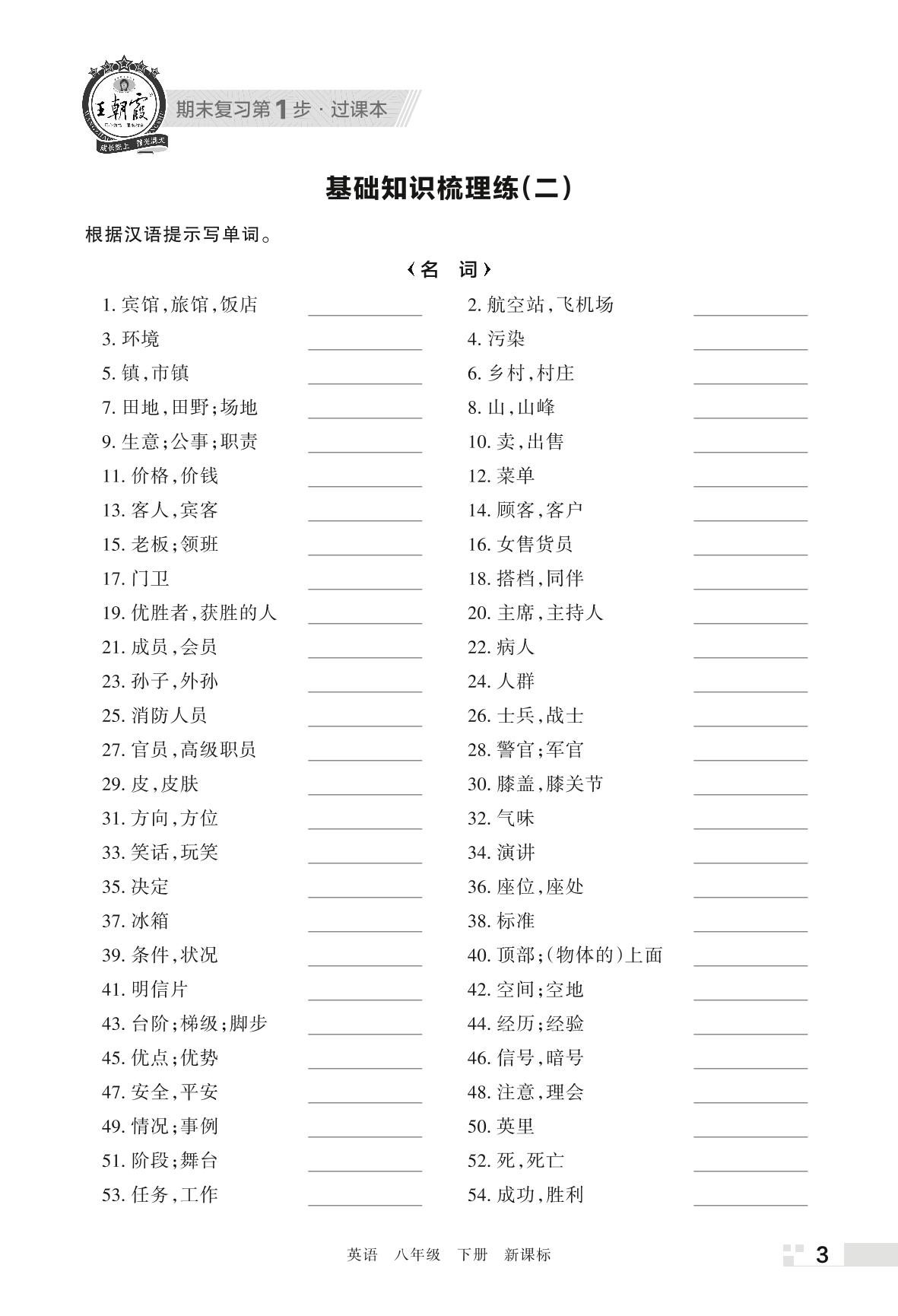 王朝霞期末过课本——基础知识梳理练(二)八年级下册英语(新课标版)
