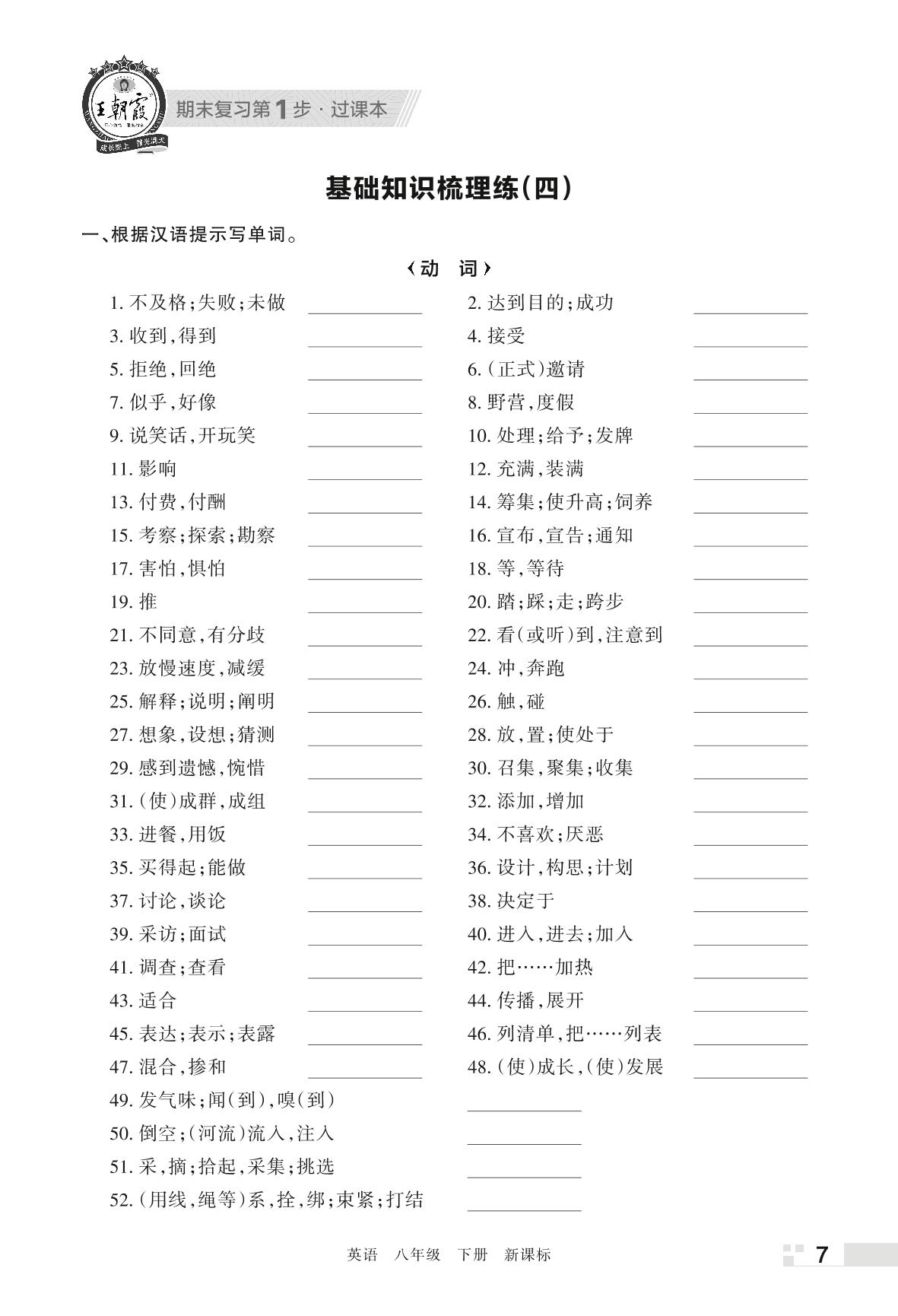 王朝霞期末过课本——基础知识梳理练(四)八年级下册英语(新课标版)
