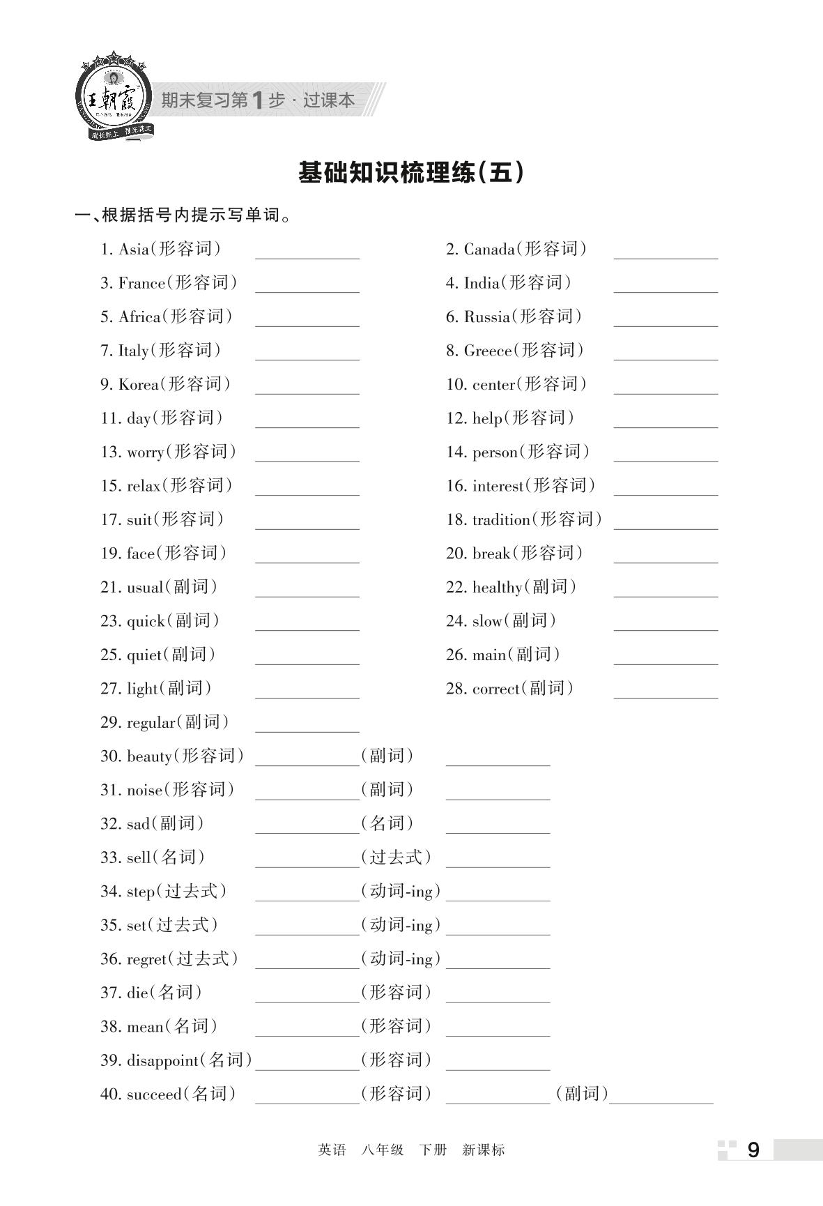 王朝霞期末过课本——基础知识梳理练(五)八年级下册英语(新课标版)