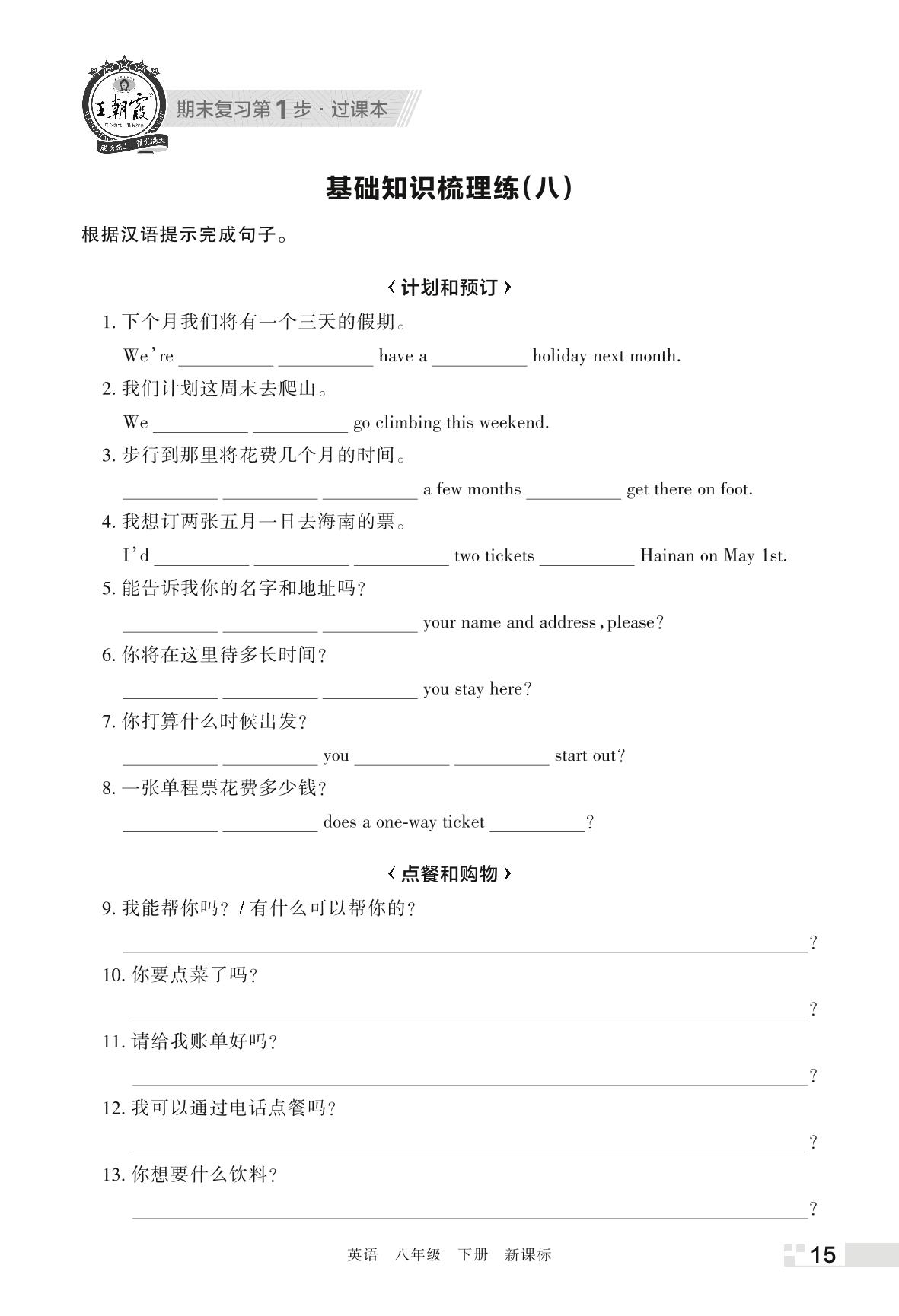 王朝霞期末过课本——基础知识梳理练(八)八年级下册英语(新课标版)