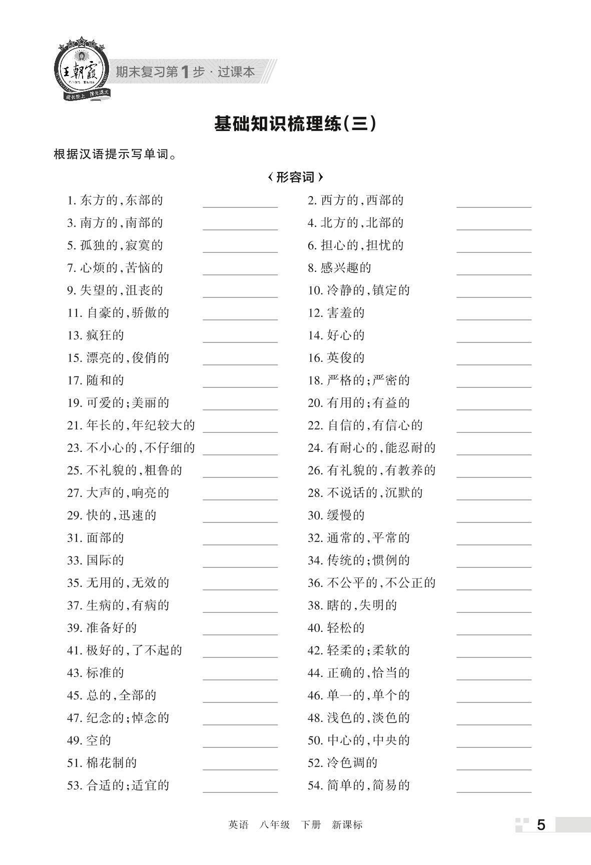 王朝霞期末过课本——基础知识梳理练(三)八年级下册英语(新课标版)