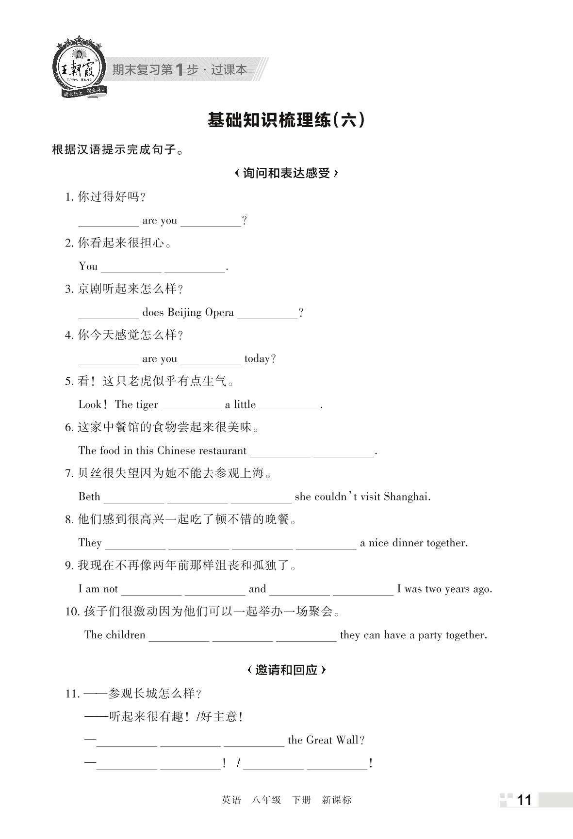 王朝霞期末过课本——基础知识梳理练(六)八年级下册英语(新课标版)