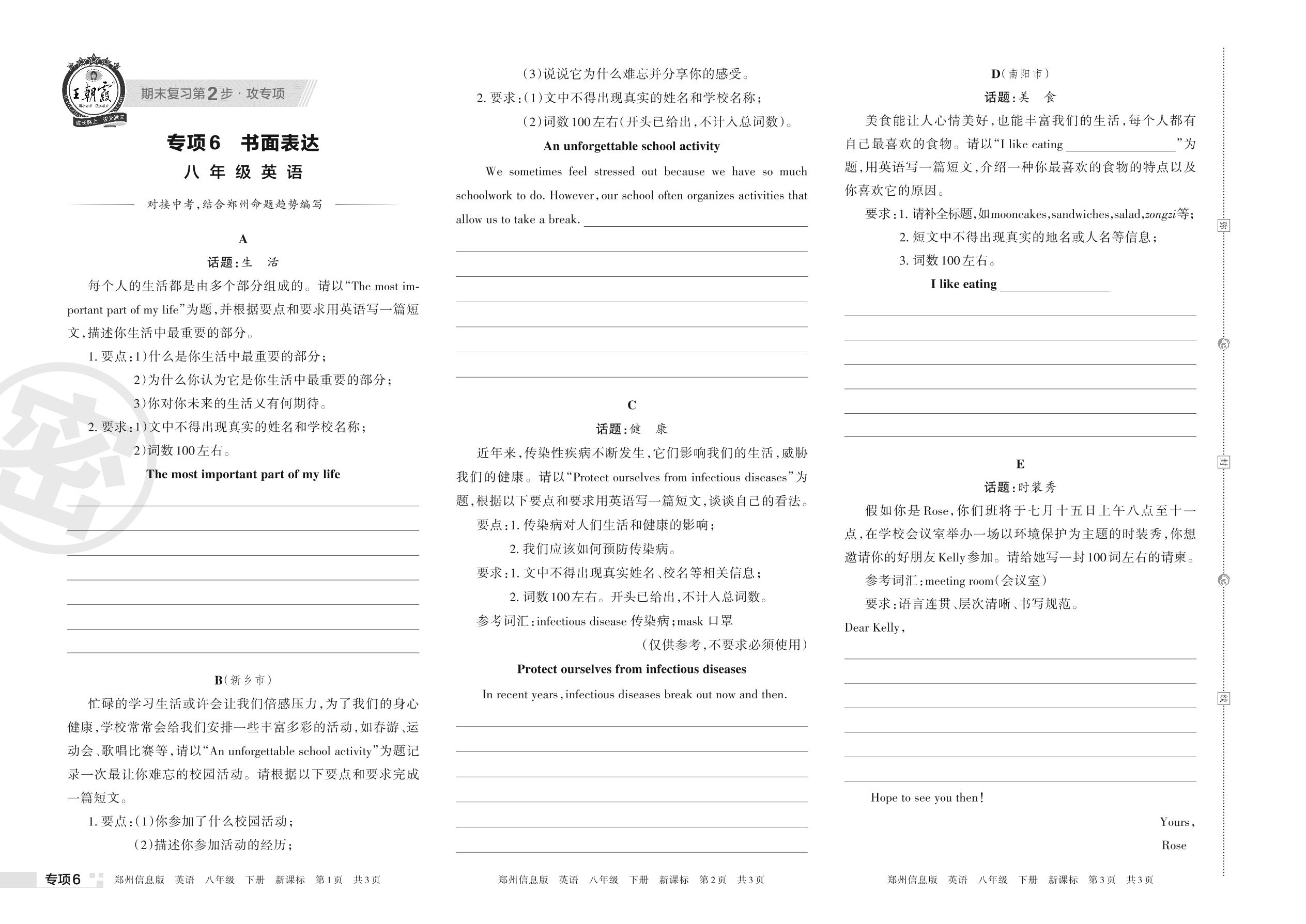 王朝霞期末专项卷——书面表达八年级下册英语(新课标版)【6】