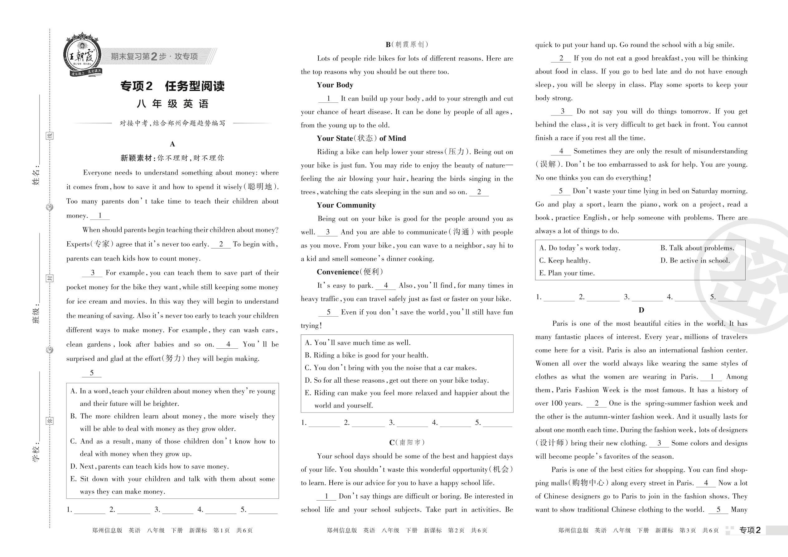 王朝霞期末专项卷——任务型阅读八年级下册英语(新课标版)【2】