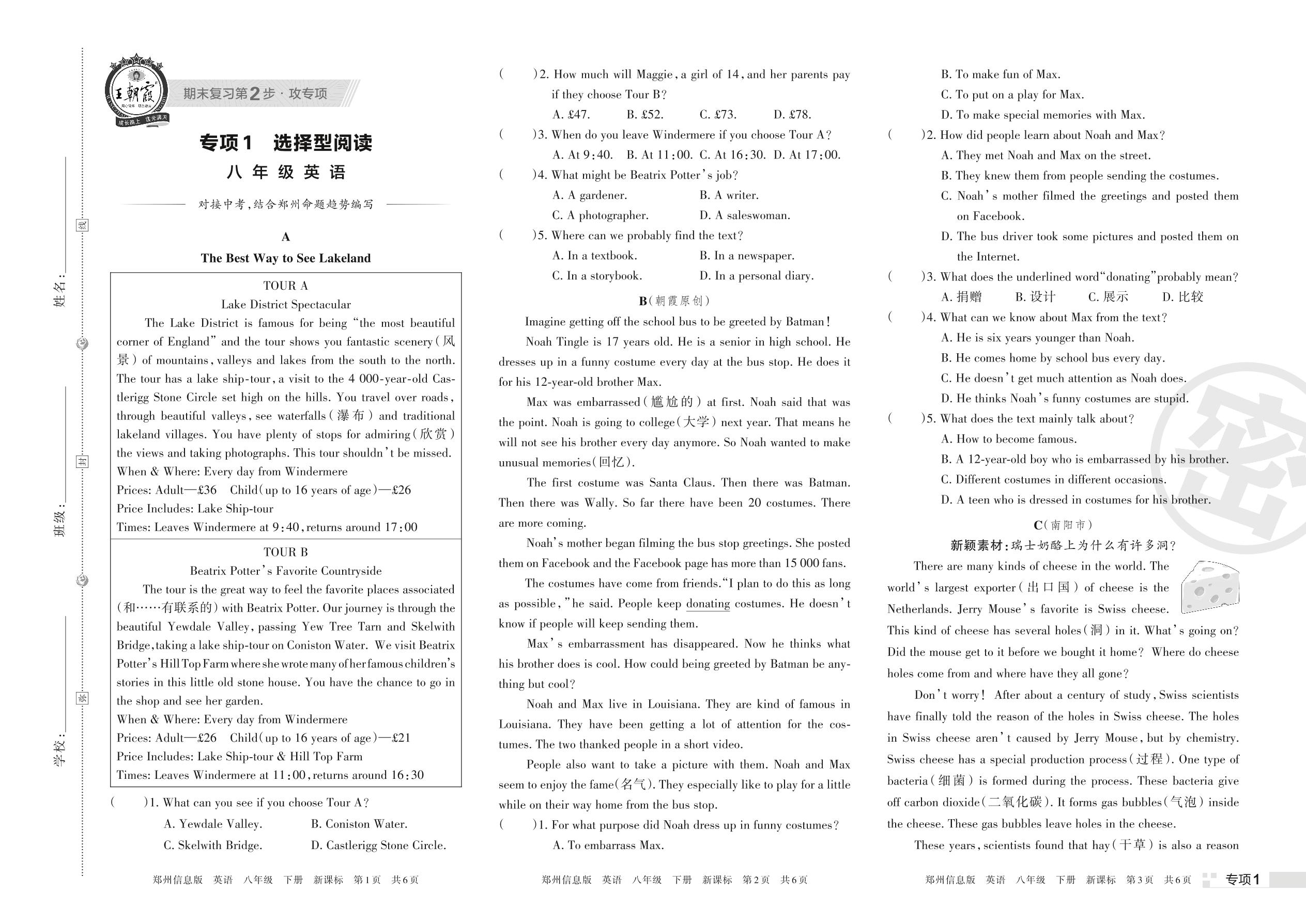 王朝霞期末专项卷——选择型阅读八年级下册英语(新课标版)【1】