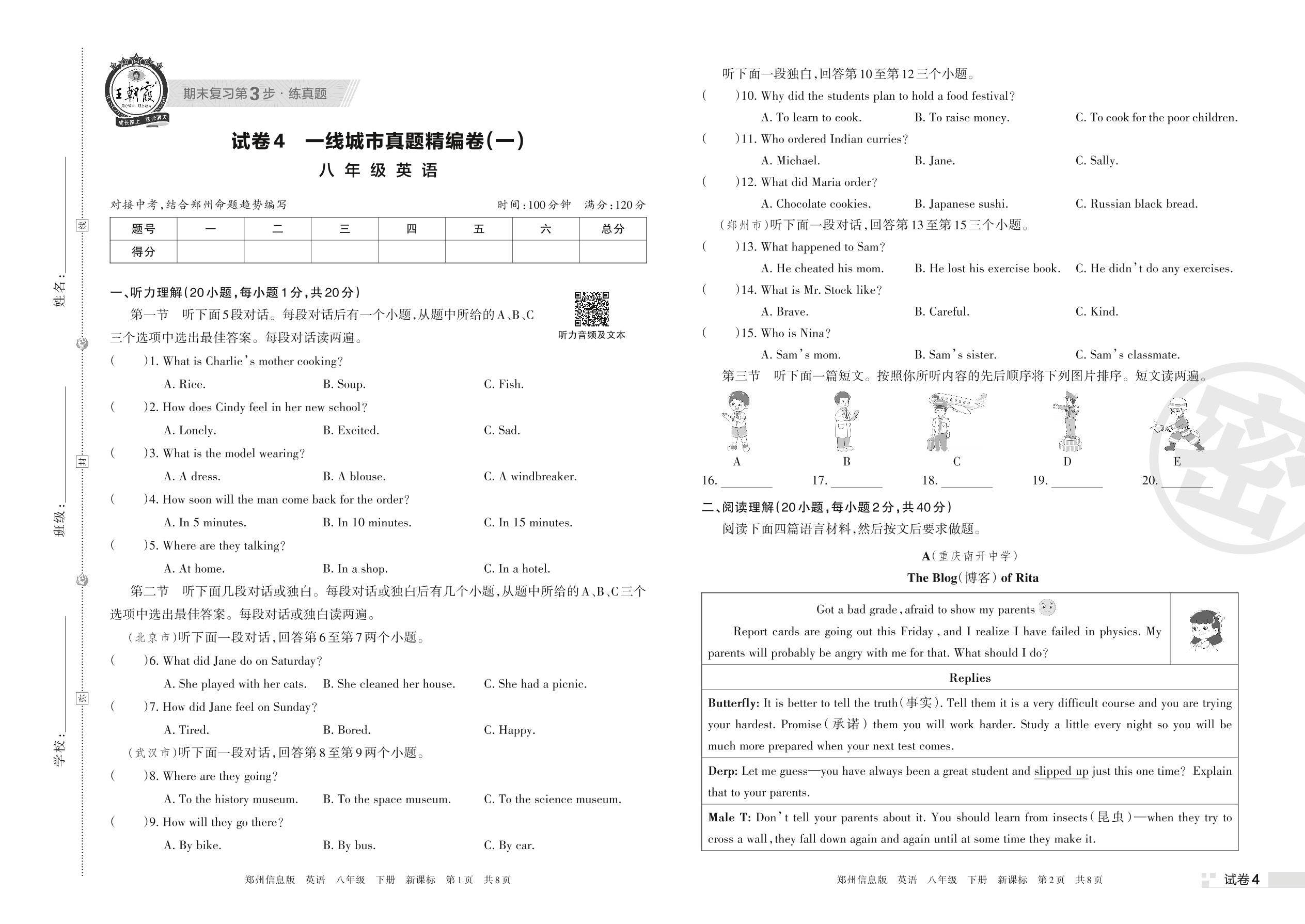 一线城市真题精编卷(一)八年级下册英语(新课标版)【4】