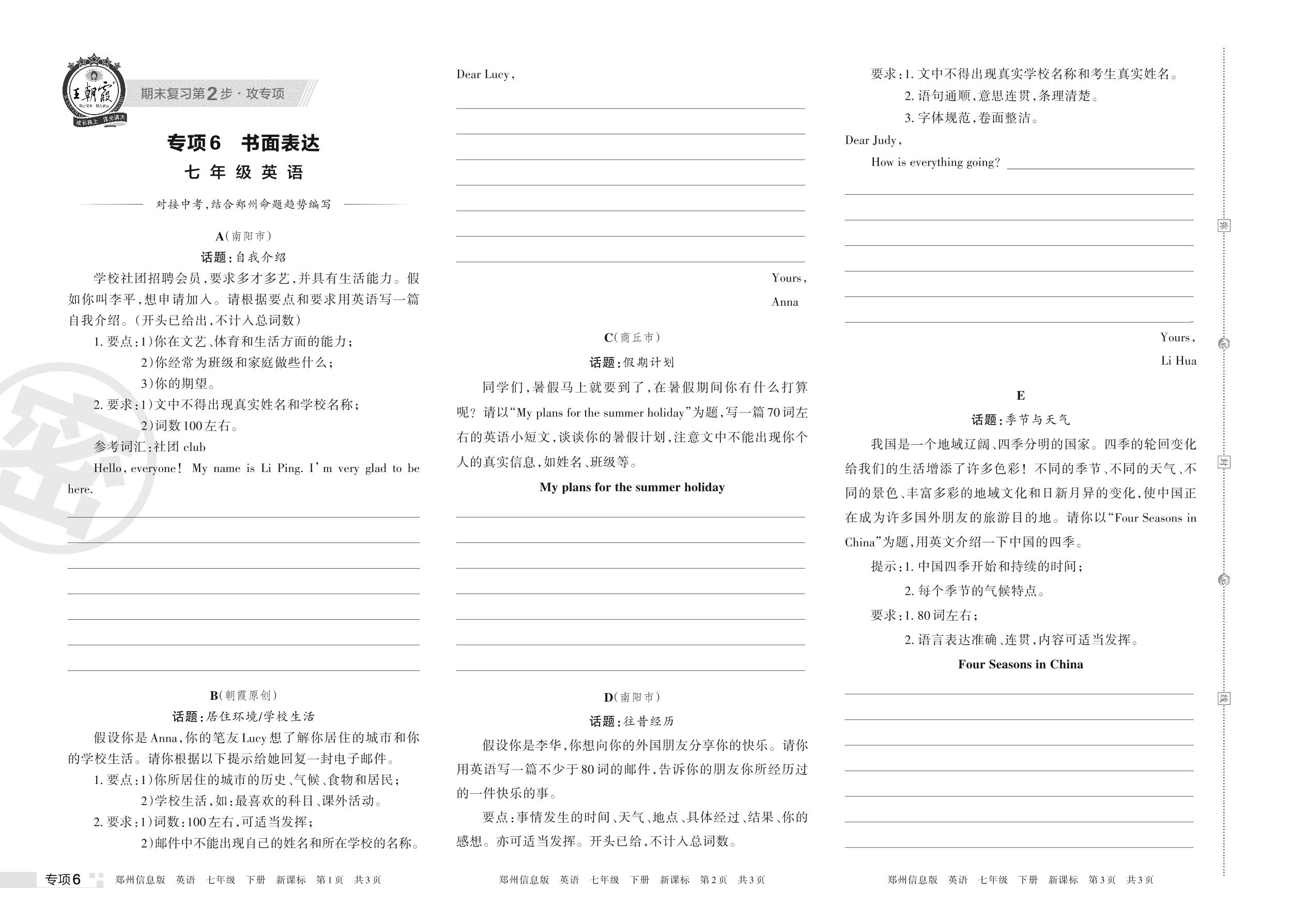 王朝霞期末专项卷——书面表达七年级下册英语(新课标版)【6】
