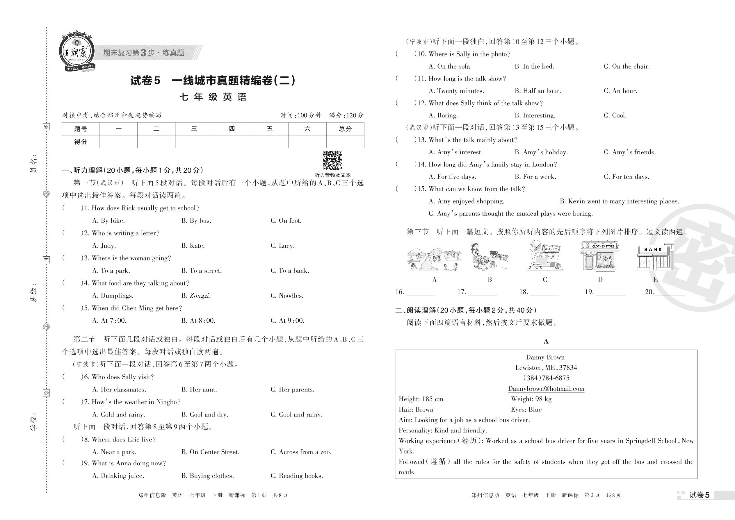 一线城市真题精编卷(二)七年级下册英语(新课标版)【5】