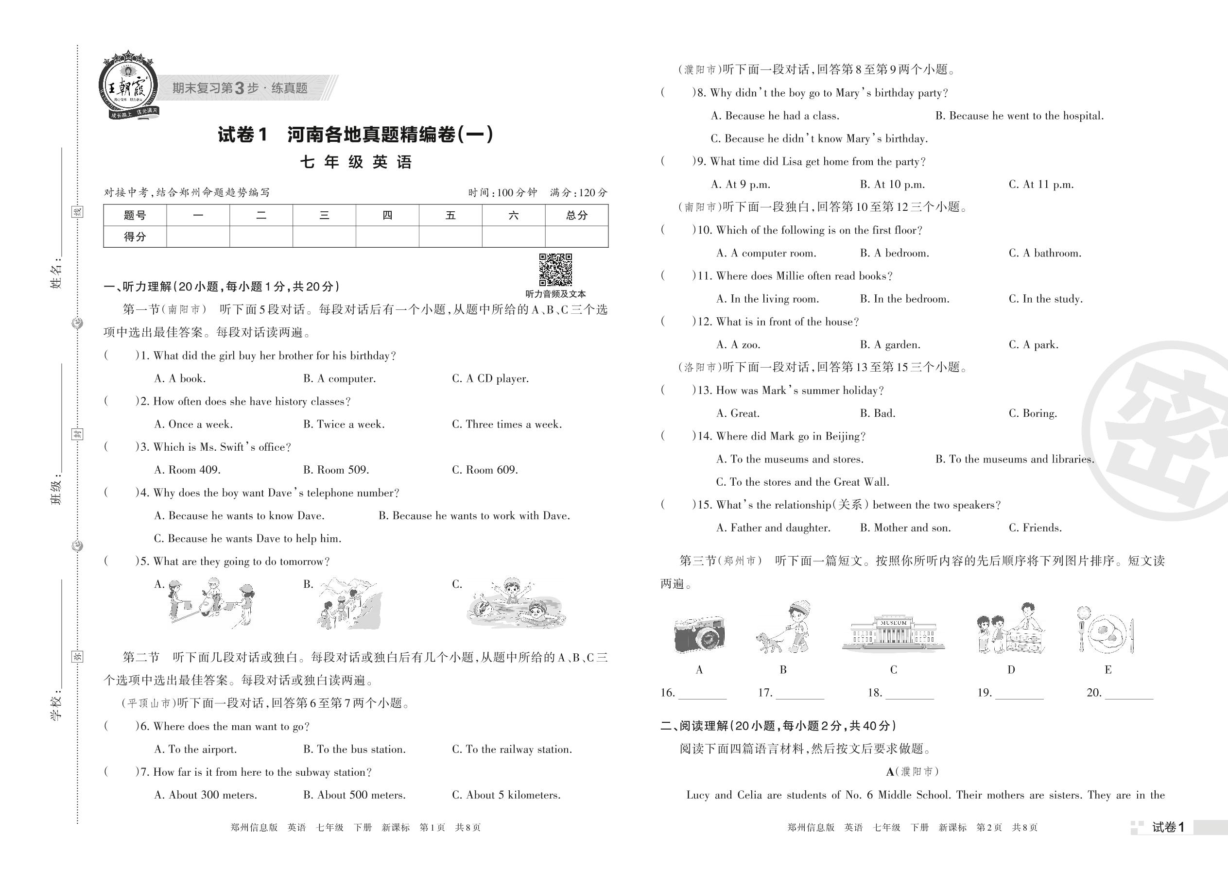 河南各地真题精编卷(一)七年级下册英语(新课标版)【1】