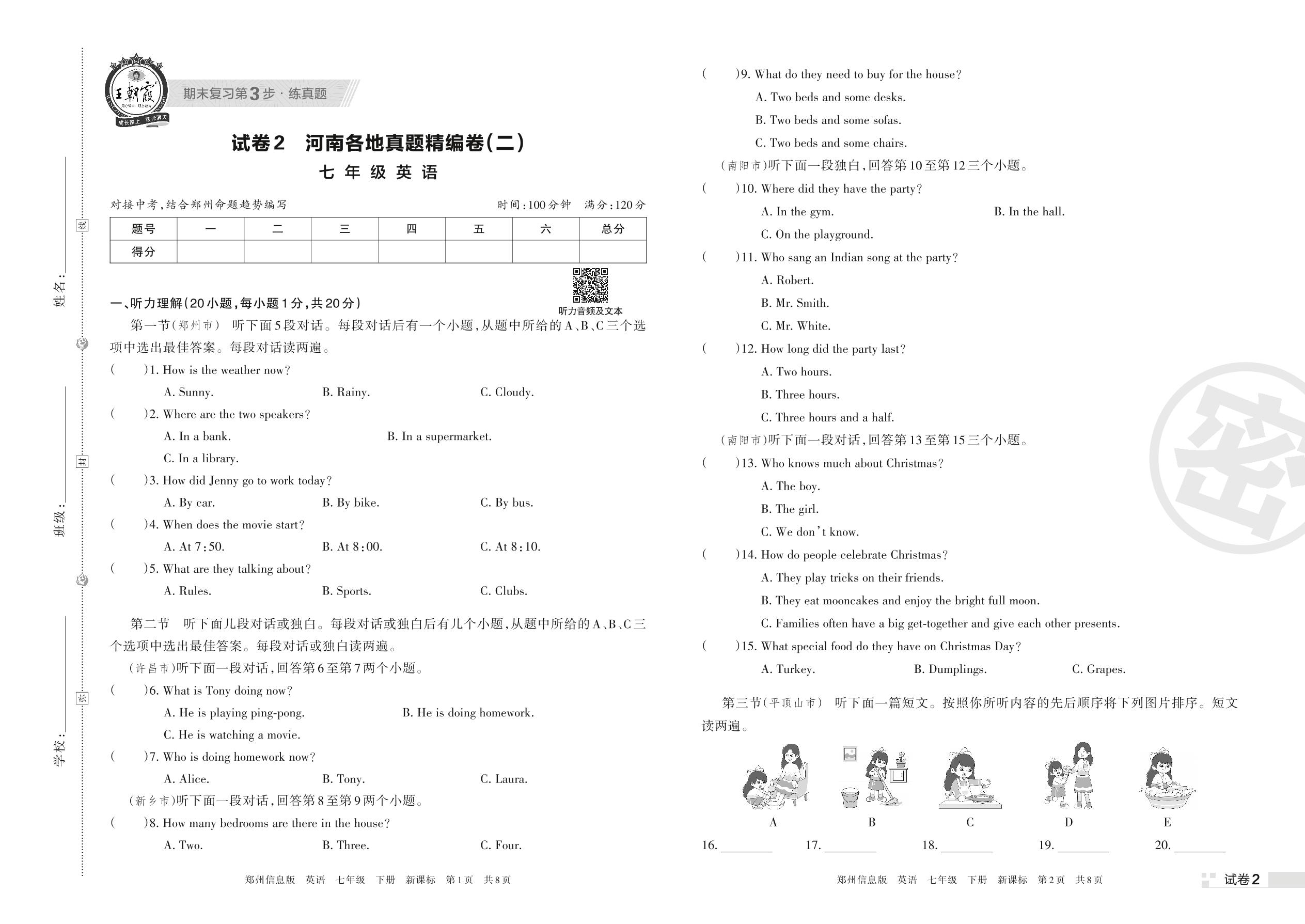 河南各地真题精编卷(二)七年级下册英语(新课标版)【2】