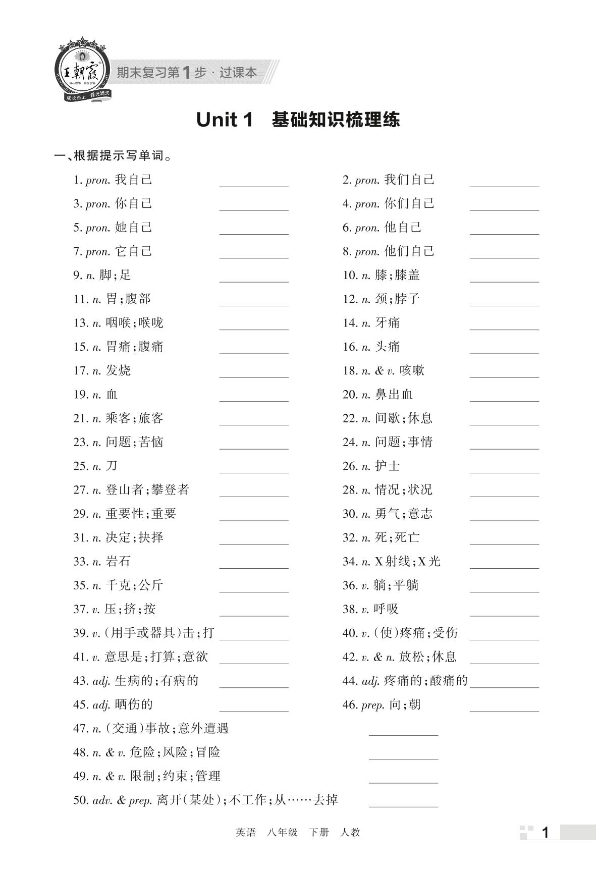 王朝霞期末过课本——Unit 1 基础知识梳理练八年级下册英语(人教版)_R220324092231450