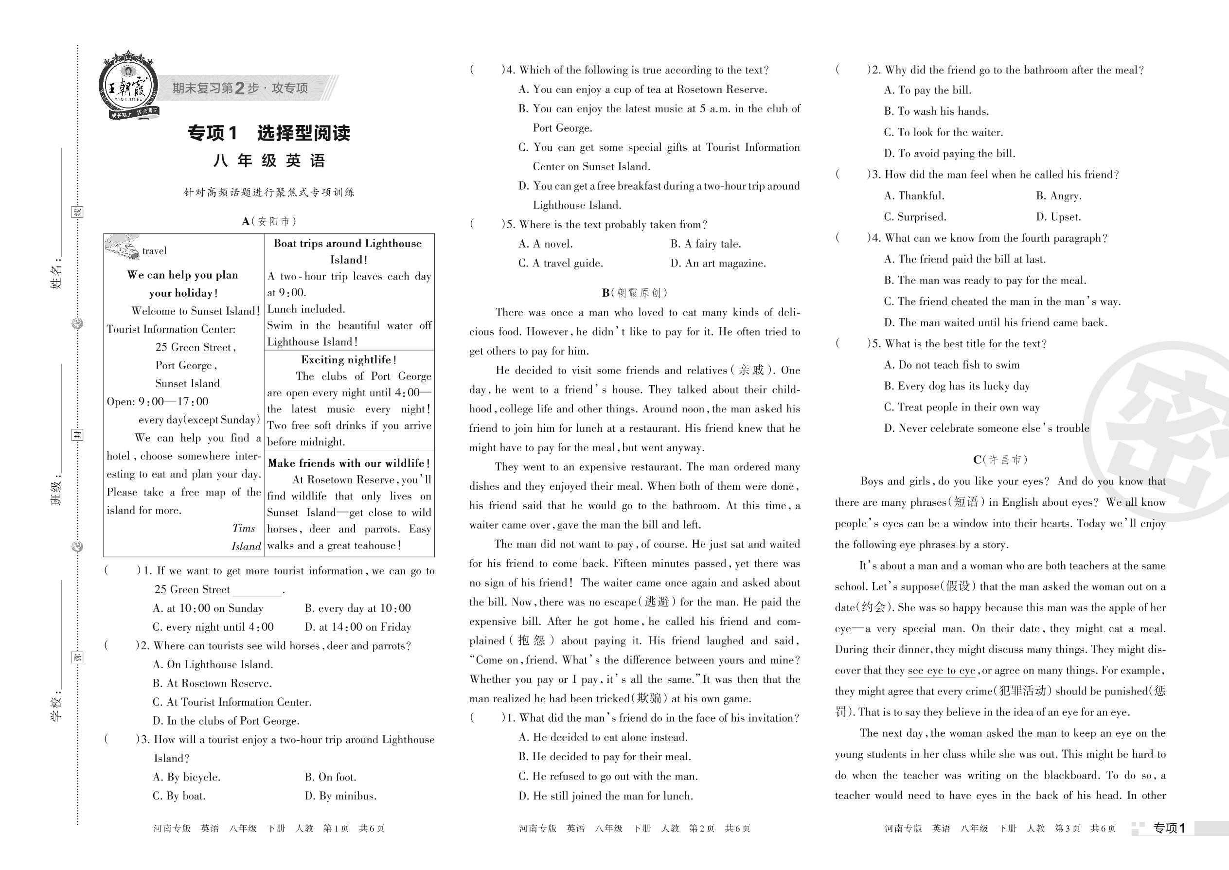 王朝霞期末专项卷——选择型阅读八年级下册英语(人教版)_R220324092232621【1】