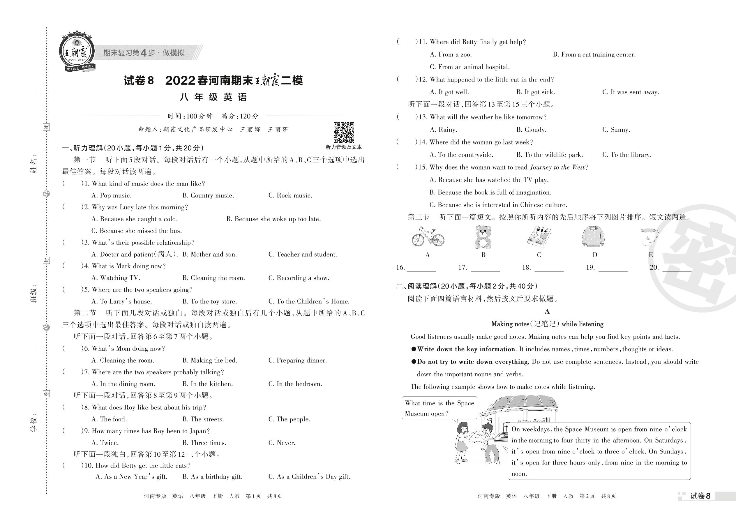 王朝霞期末模拟卷八年级下册英语(人教版)_R220324092233334【8】