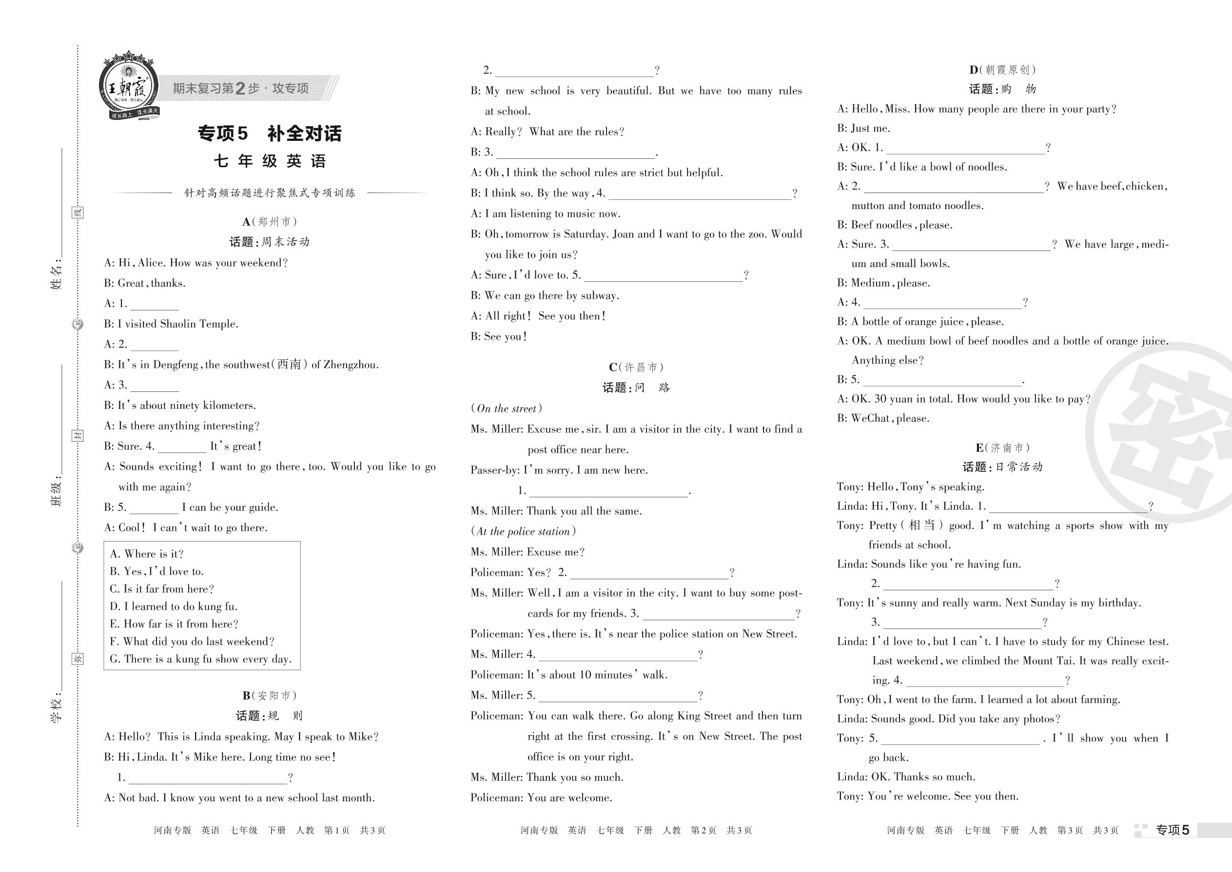 王朝霞期末专项卷——补全对话七年级下册英语(人教版)_R220324093209347【5】