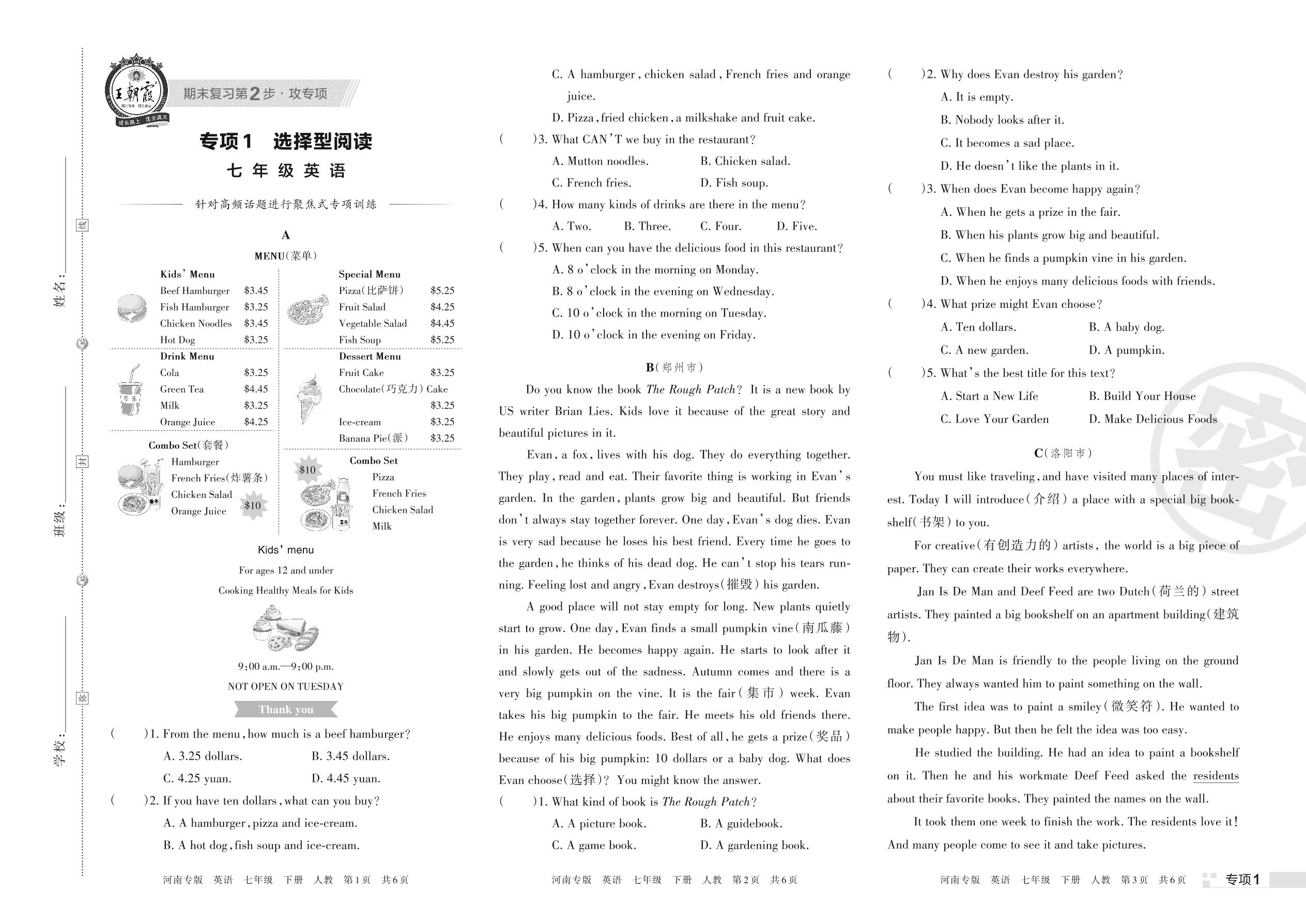 王朝霞期末专项卷——选择型阅读七年级下册英语(人教版)_R220324093209582【1】