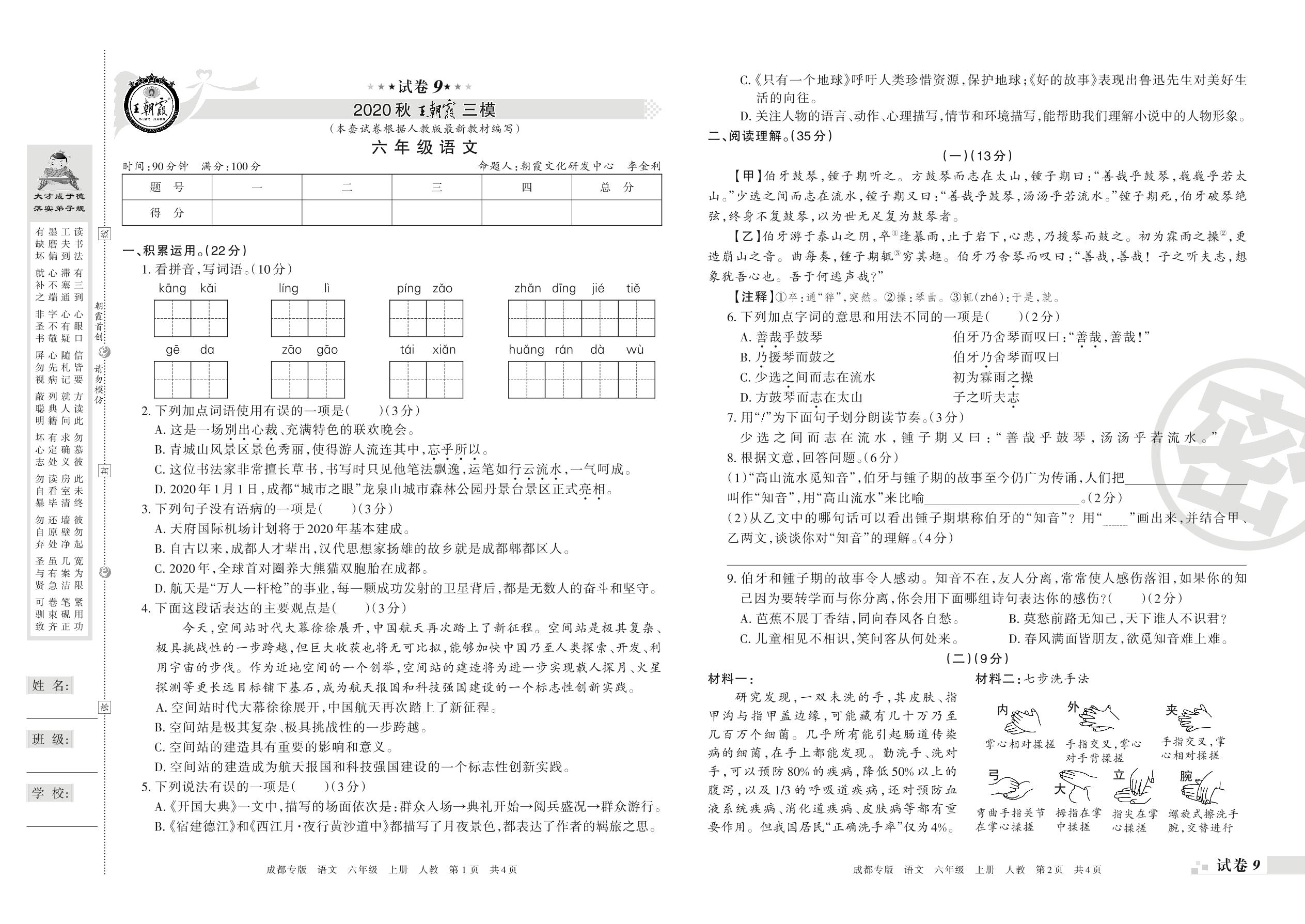 王朝霞期末模拟卷六年级上册语文(人教版)_R21080212413【9】