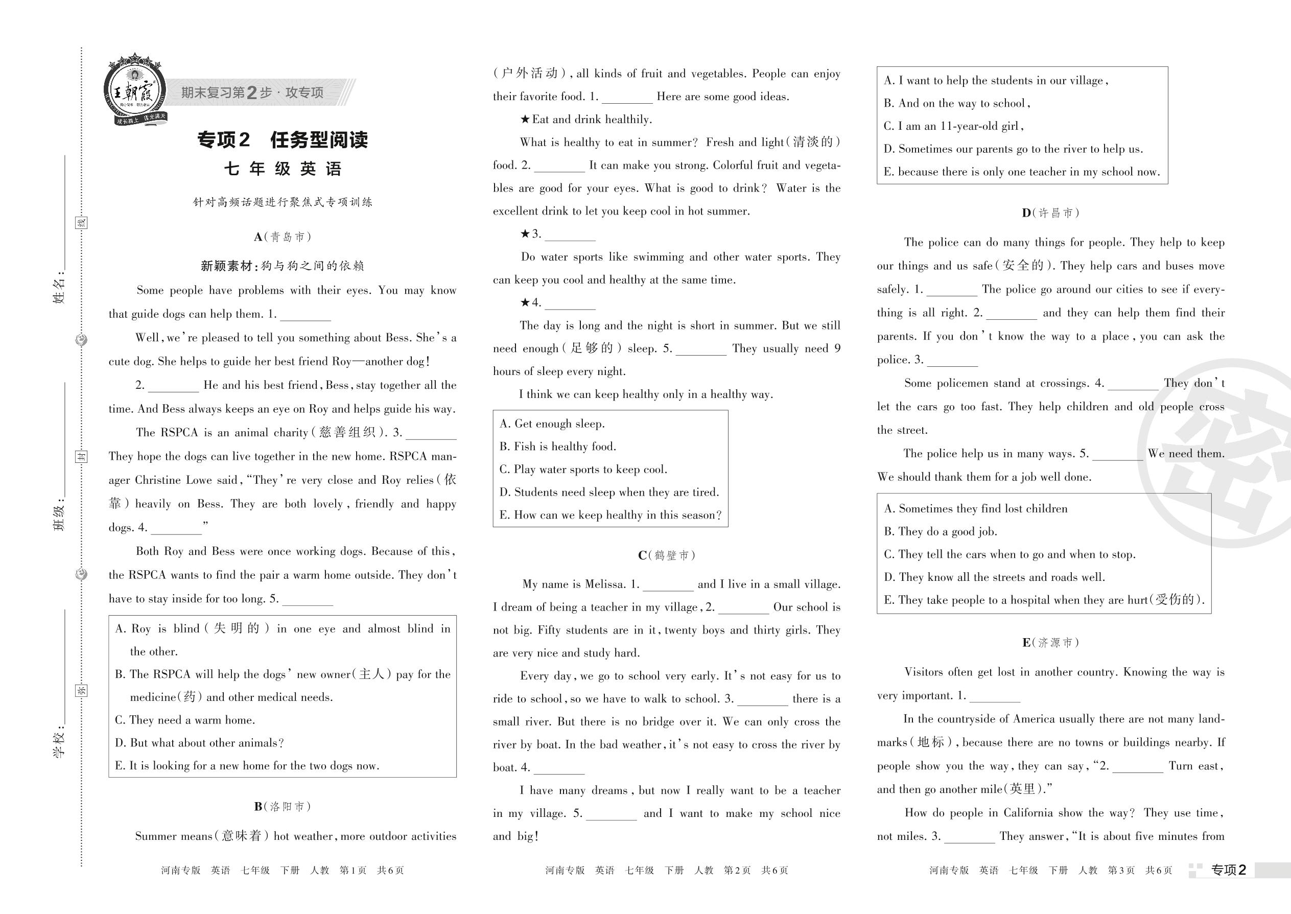 王朝霞期末专项卷——任务型阅读七年级下册英语(人教版)_R220324093210574【2】