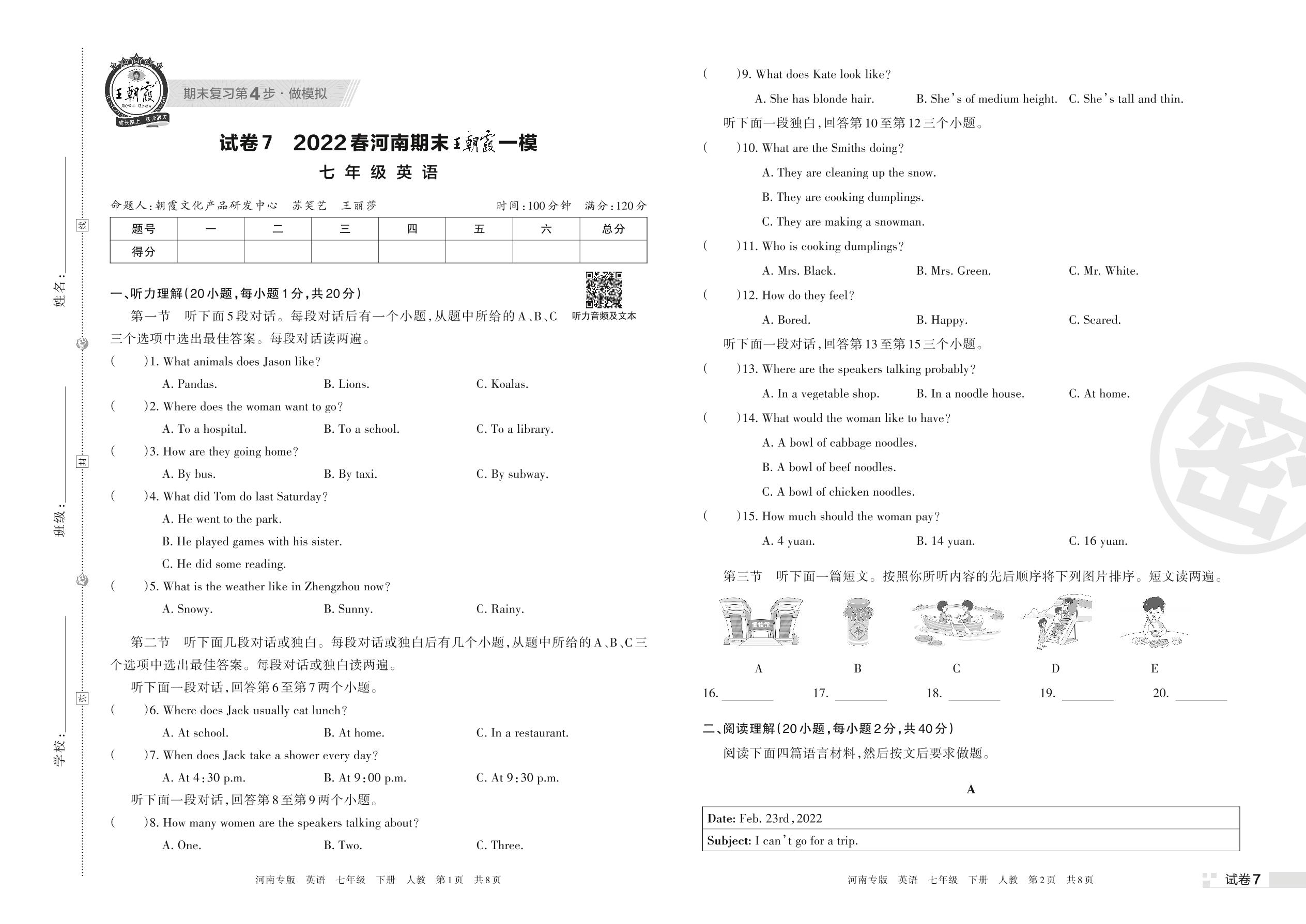 王朝霞期末模拟卷七年级下册英语(人教版)_R220324093211777【7】