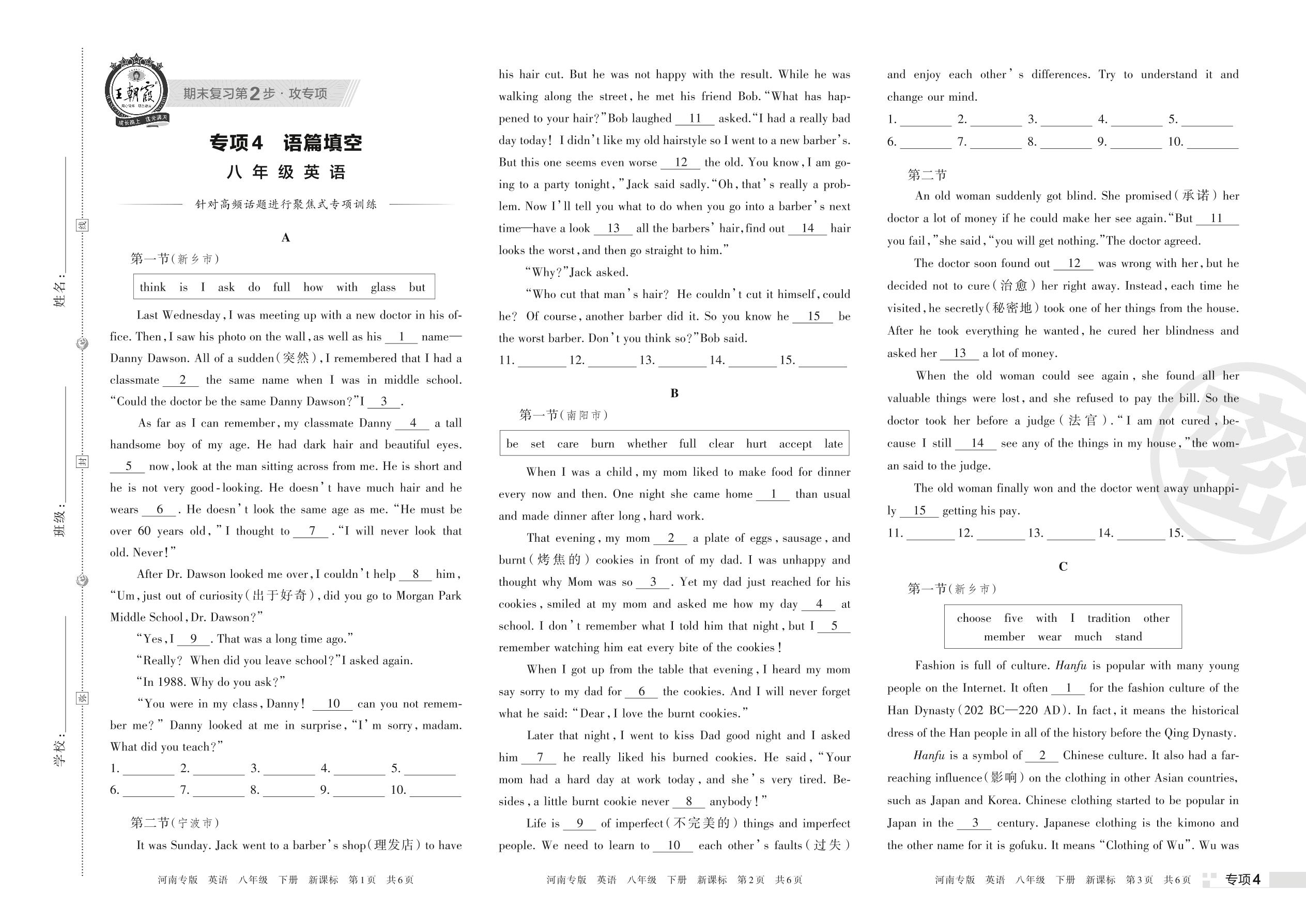 王朝霞期末专项卷——语篇填空八年级下册英语(新课标版)_R220324095722895【4】