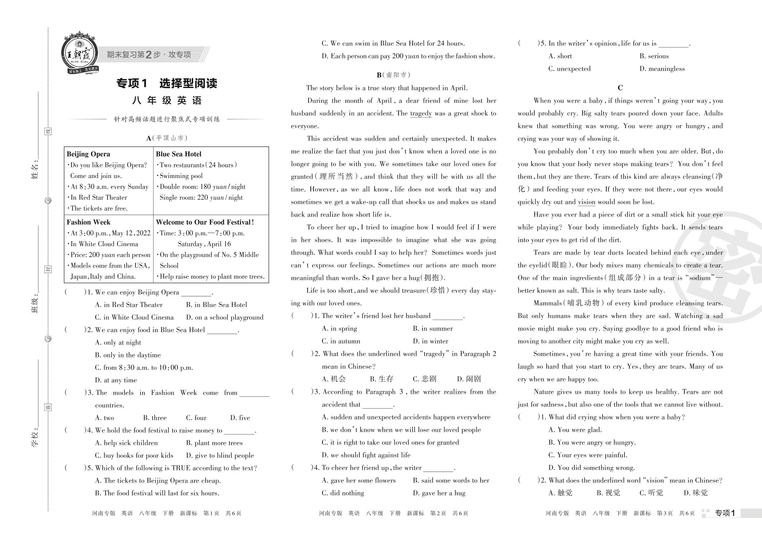 王朝霞期末专项卷——选择型阅读八年级下册英语(新课标版)_R220324095722299【1】