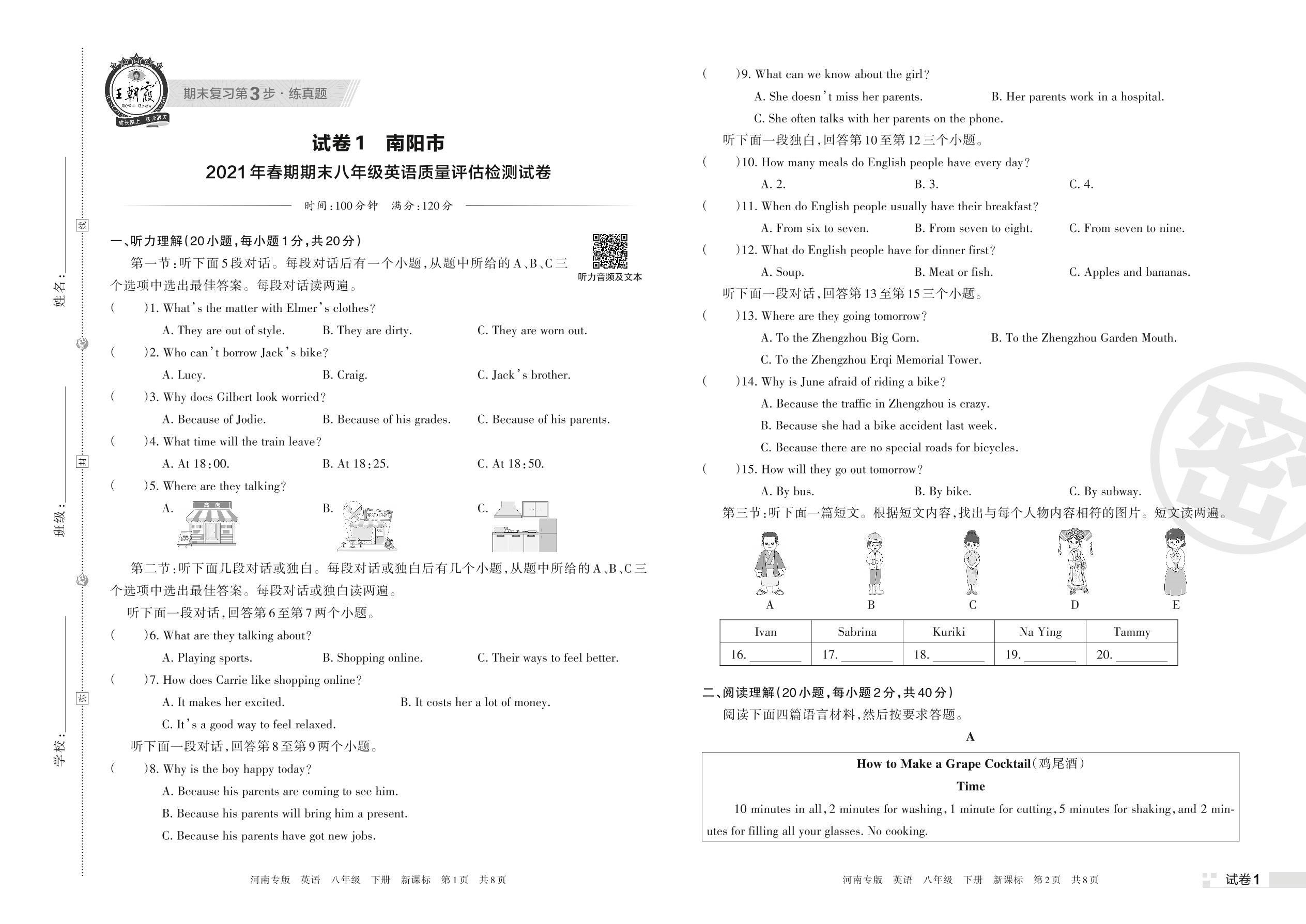 南阳市2021年春期期末八年级英语质量评估检测试卷(新课标版)【1】