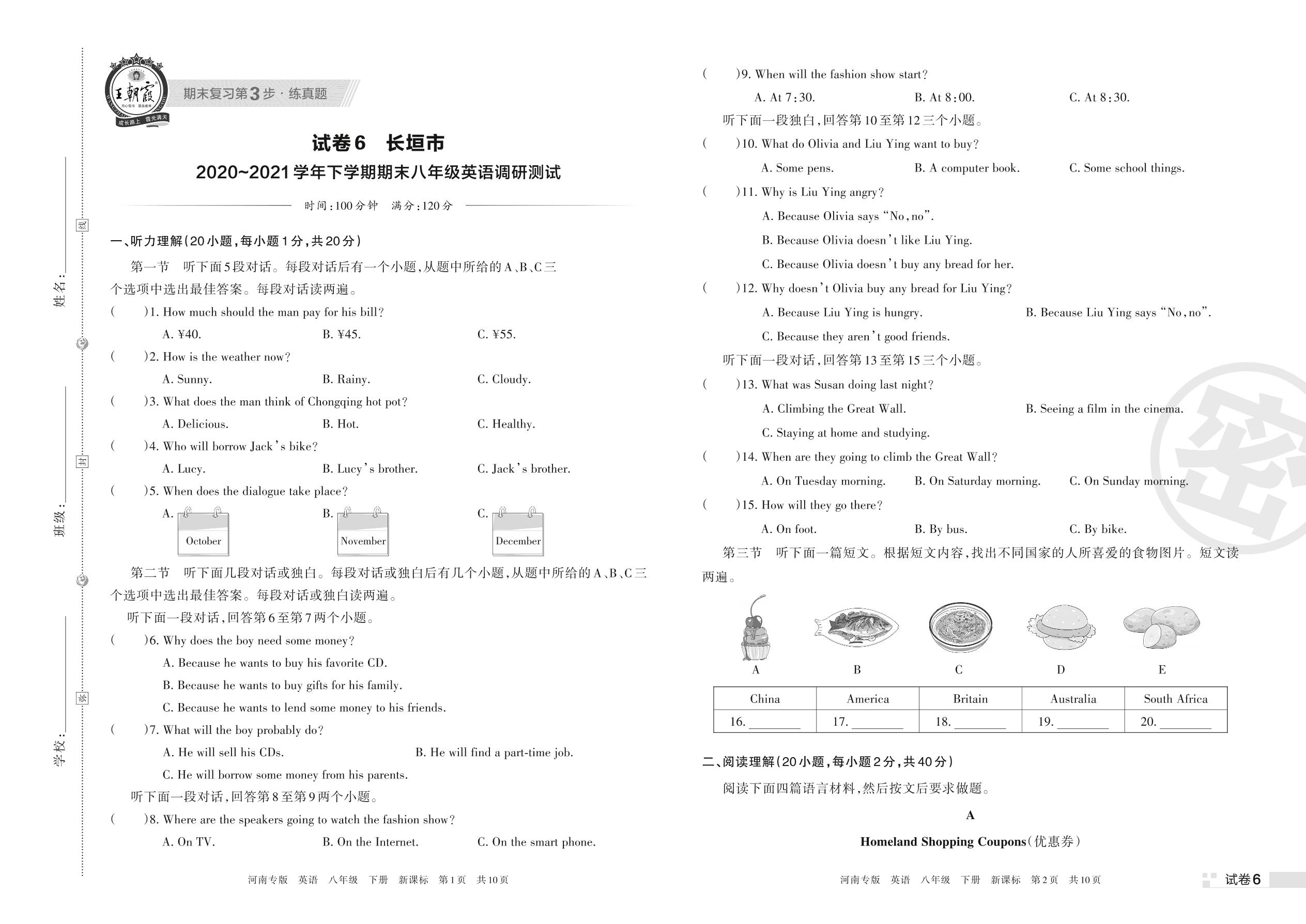 长垣市2020~2021学年下学期期末八年级英语调研测试(新课标版)【6】