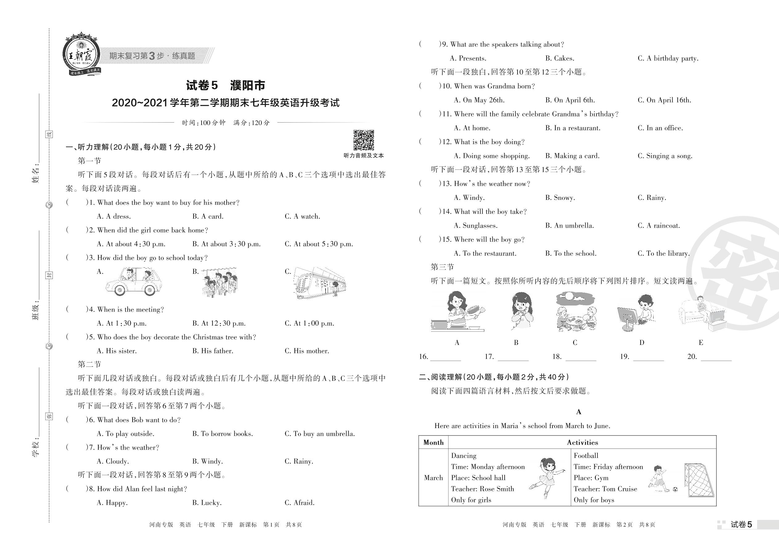 濮阳市2020~2021学年第二学期期末七年级英语升级考试(新课标版)【5】