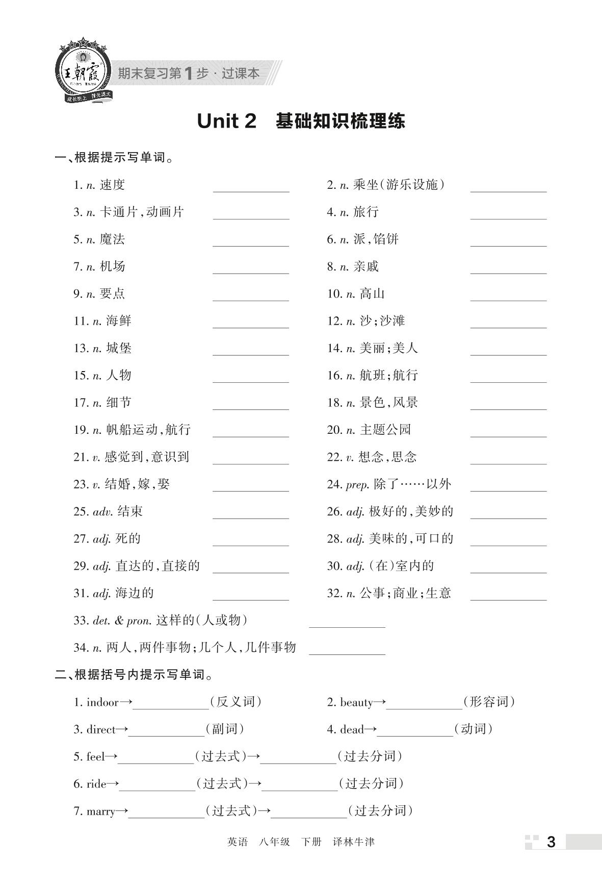 王朝霞期末过课本——Unit 2 基础知识梳理练八年级下册英语(译林牛津版)_R220324104930709