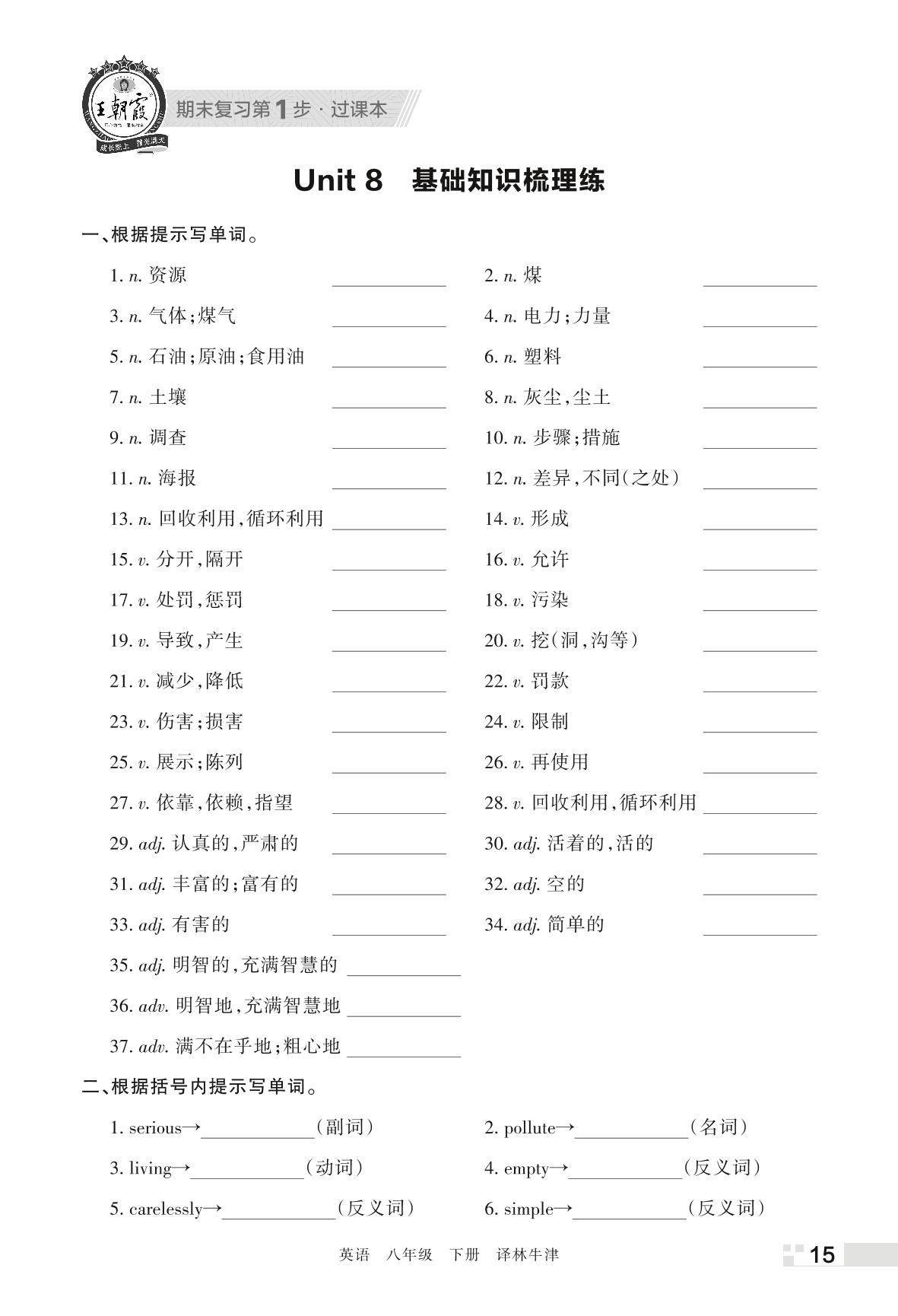 王朝霞期末过课本——Unit 8 基础知识梳理练八年级下册英语(译林牛津版)_R220324104930589