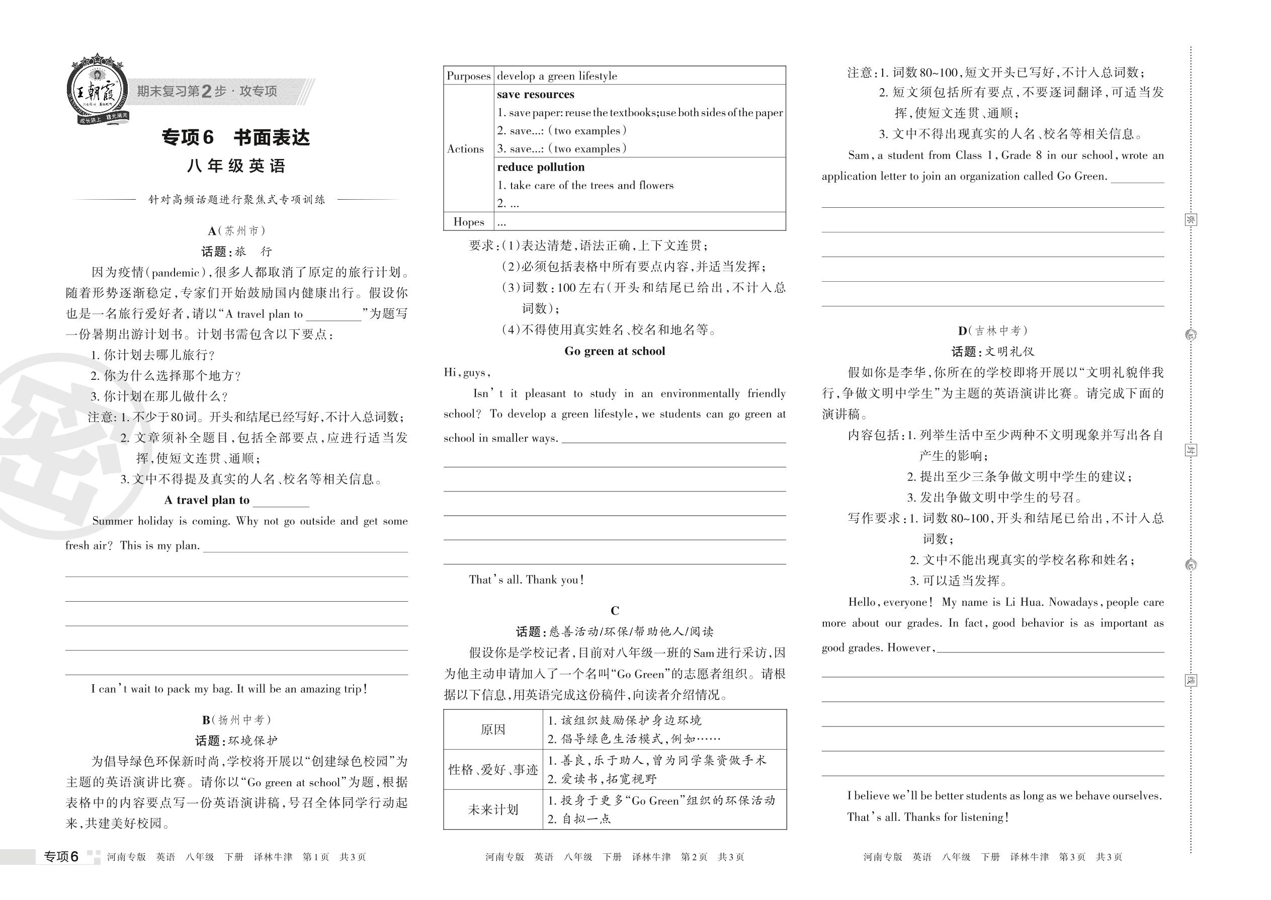 王朝霞期末专项卷——书面表达八年级下册英语(译林牛津版)_R220324104930745【6】