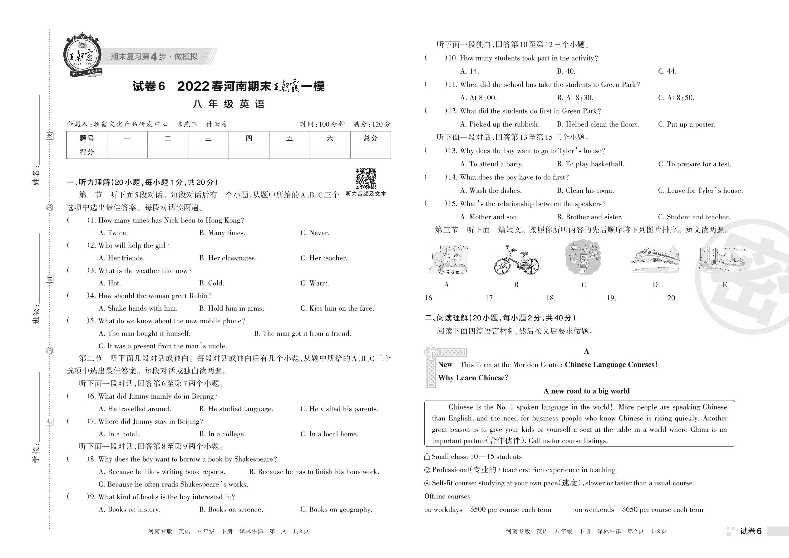 王朝霞期末模拟卷八年级下册英语(译林牛津版)_R220324104932095【6】