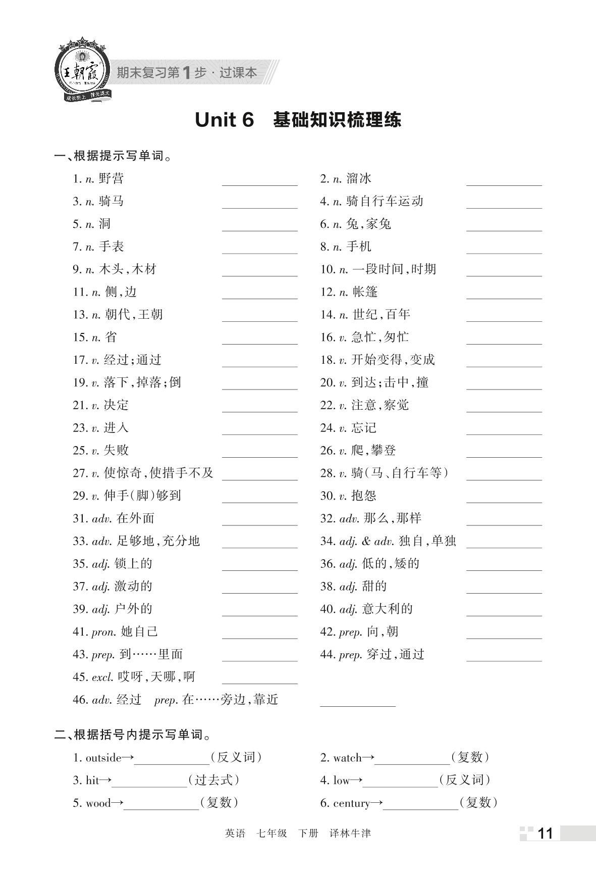 王朝霞期末过课本——Unit 6 基础知识梳理练七年级下册英语(译林牛津版)_R220324105706477