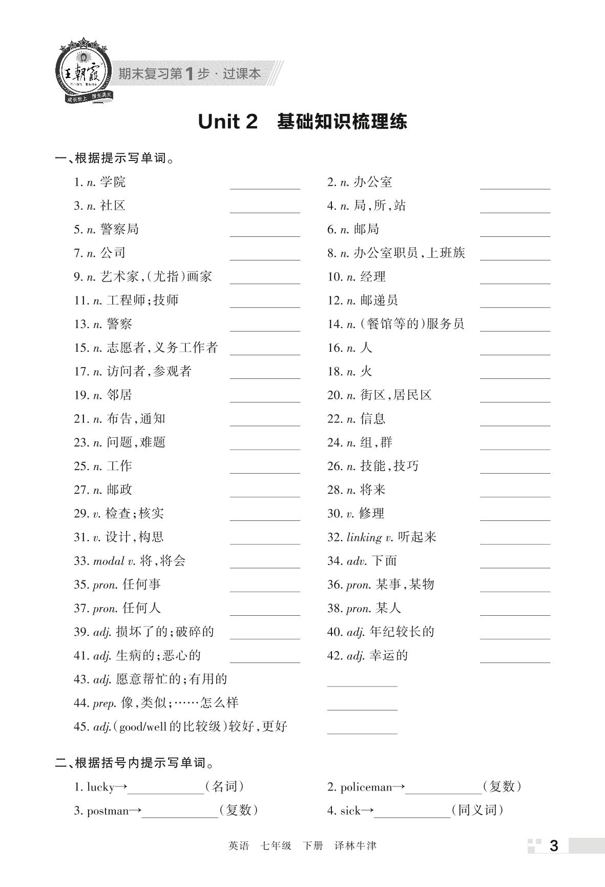 王朝霞期末过课本——Unit 2 基础知识梳理练七年级下册英语(译林牛津版)_R220324105706225