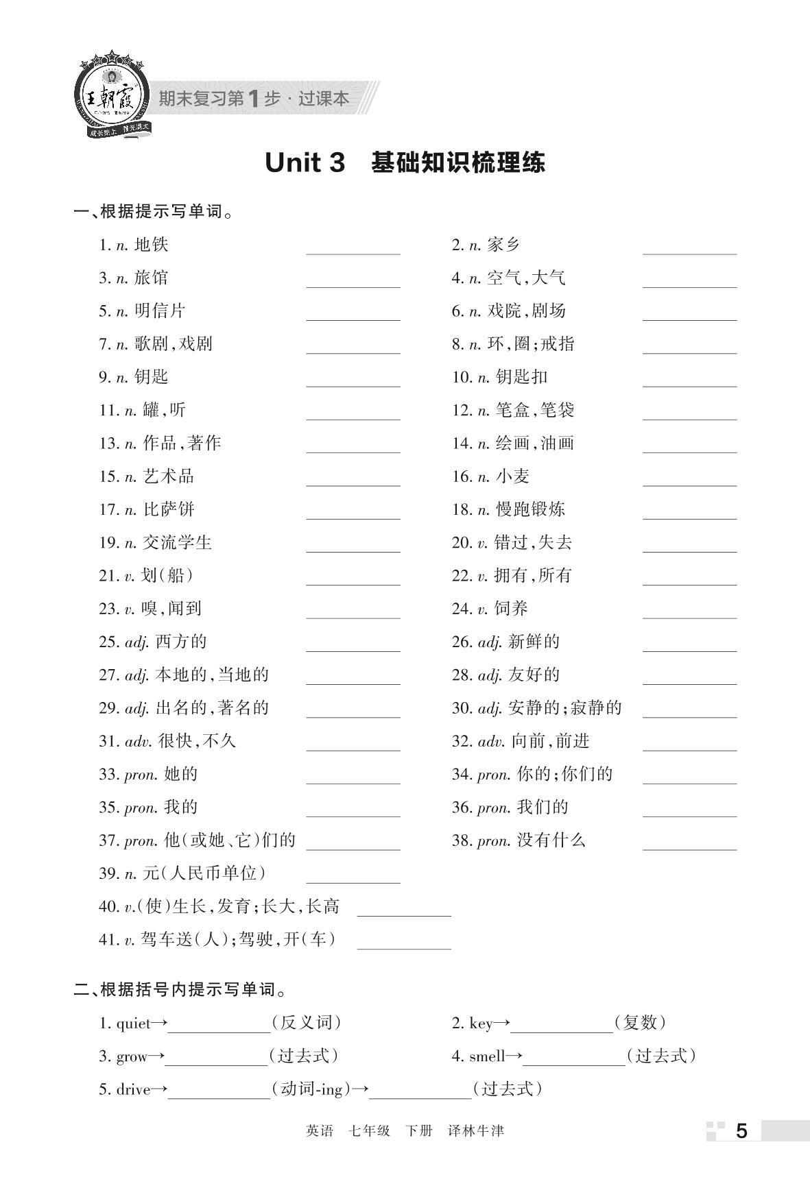 王朝霞期末过课本——Unit 3 基础知识梳理练七年级下册英语(译林牛津版)_R220324105706665