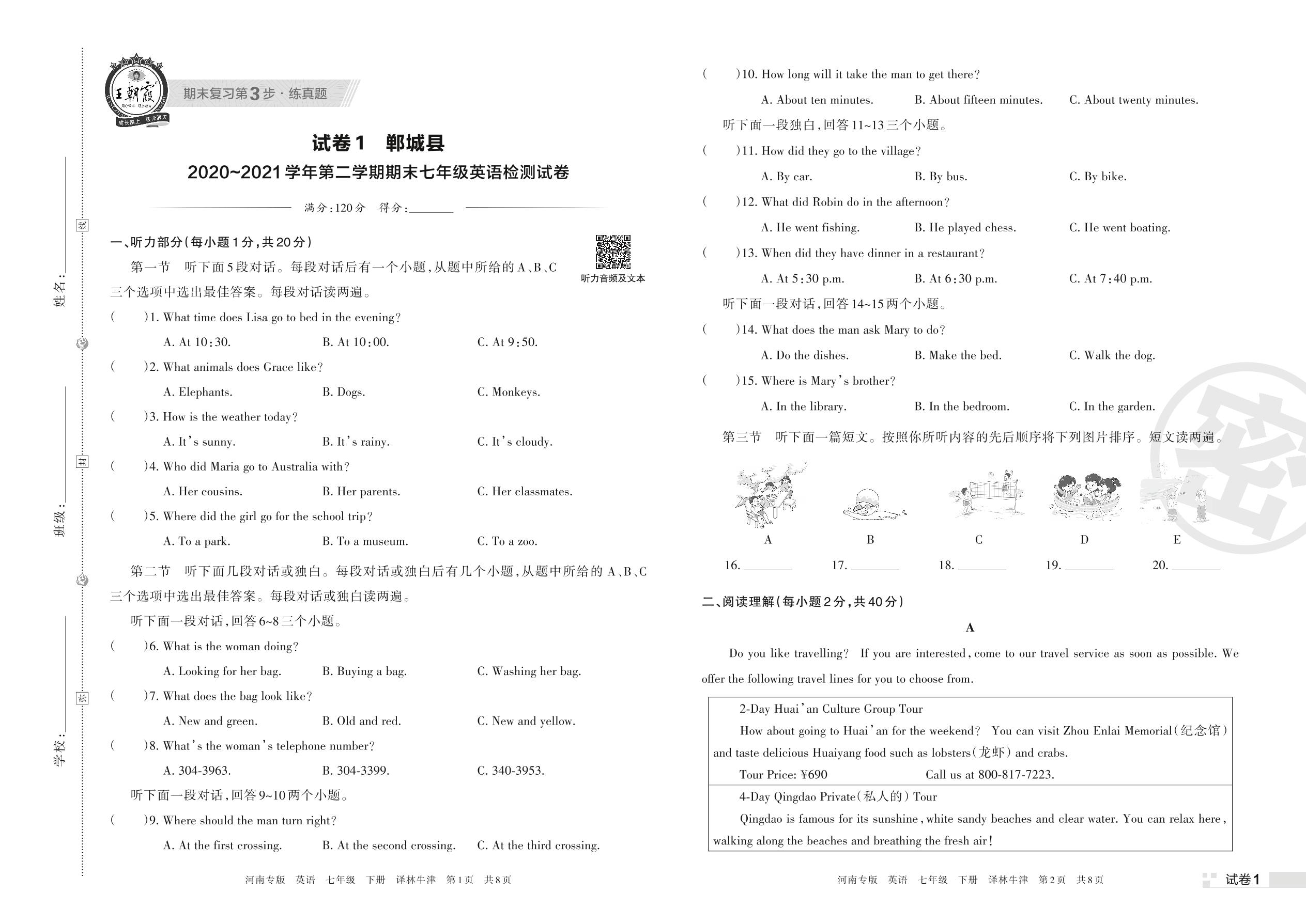 郸城县2020~2021学年第二学期期末七年级英语检测试卷(译林牛津版)【1】