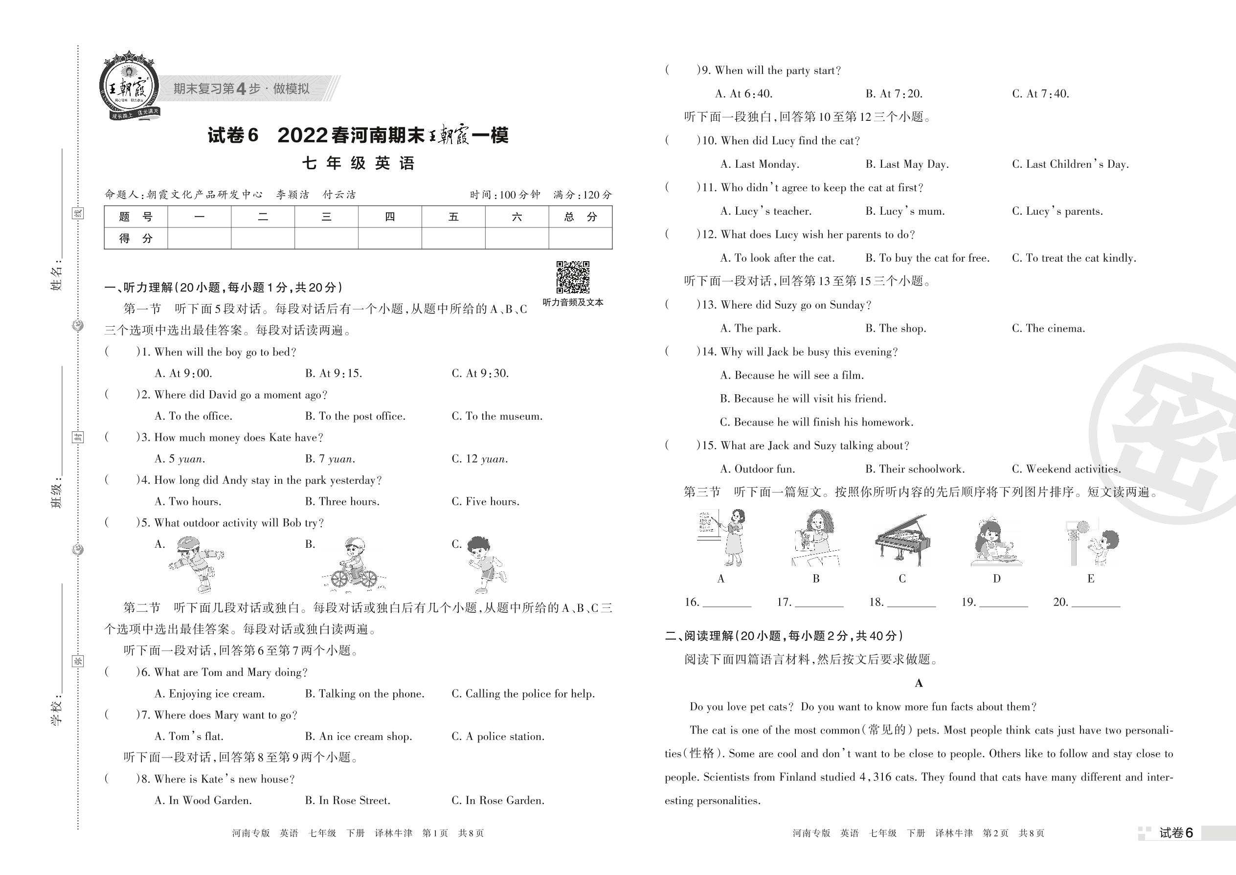 王朝霞期末模拟卷七年级下册英语(译林牛津版)_R220324105708212【6】