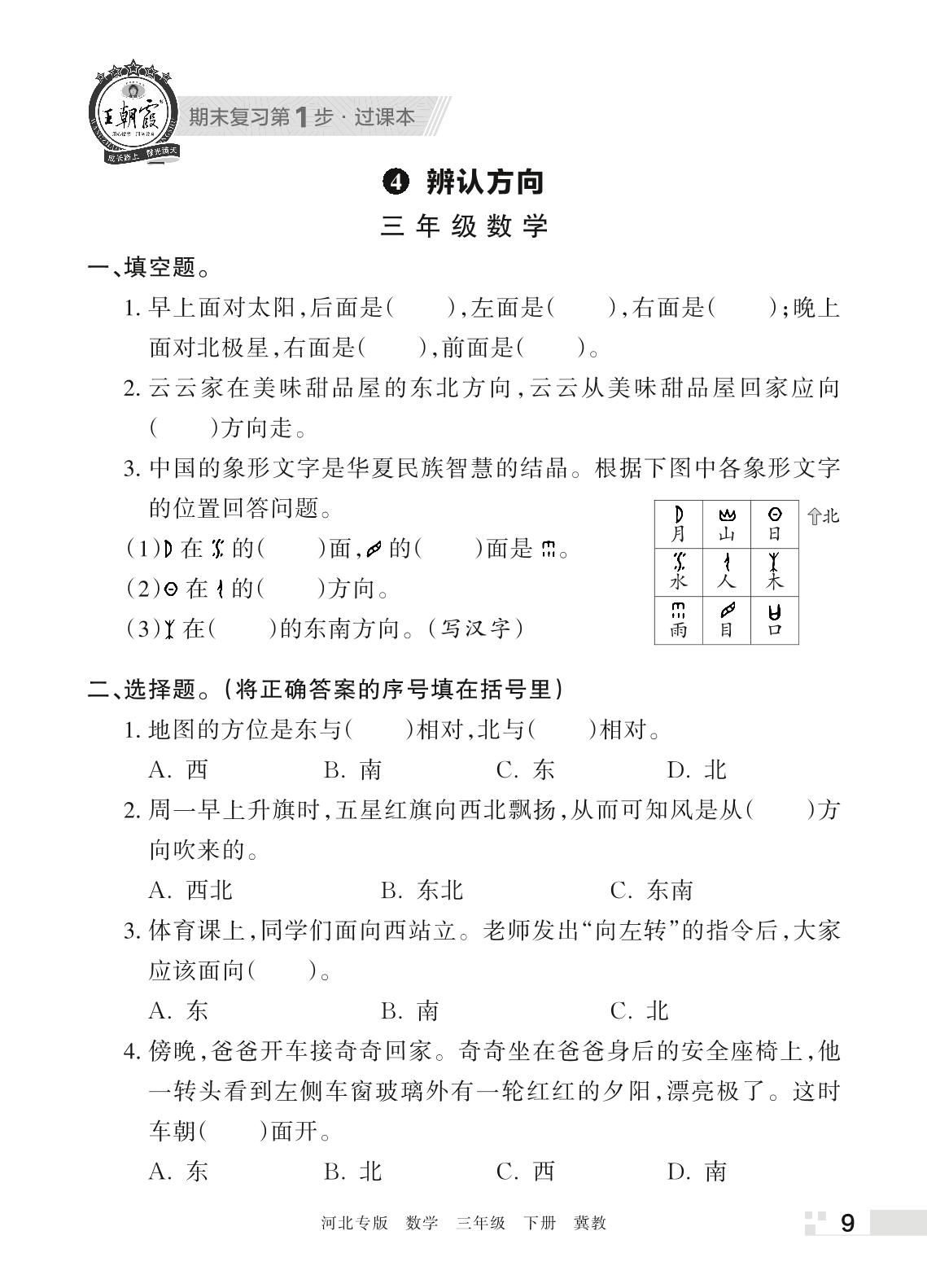 王朝霞期末过课本——4 辨认方向三年级下册数学(冀教版)