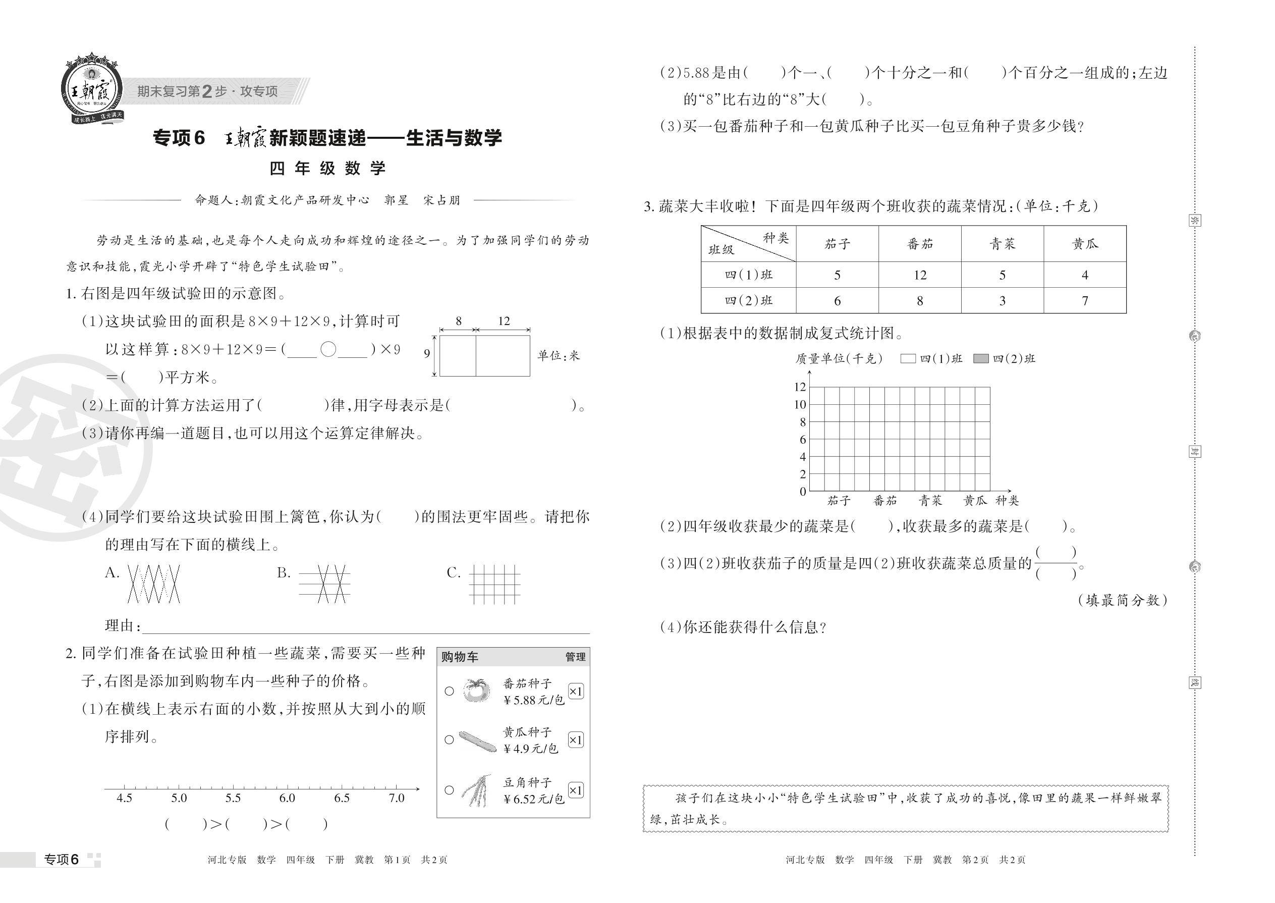 王朝霞期末专项卷——新颖题速递:生活与数学四年级下册数学(冀教版)【6】