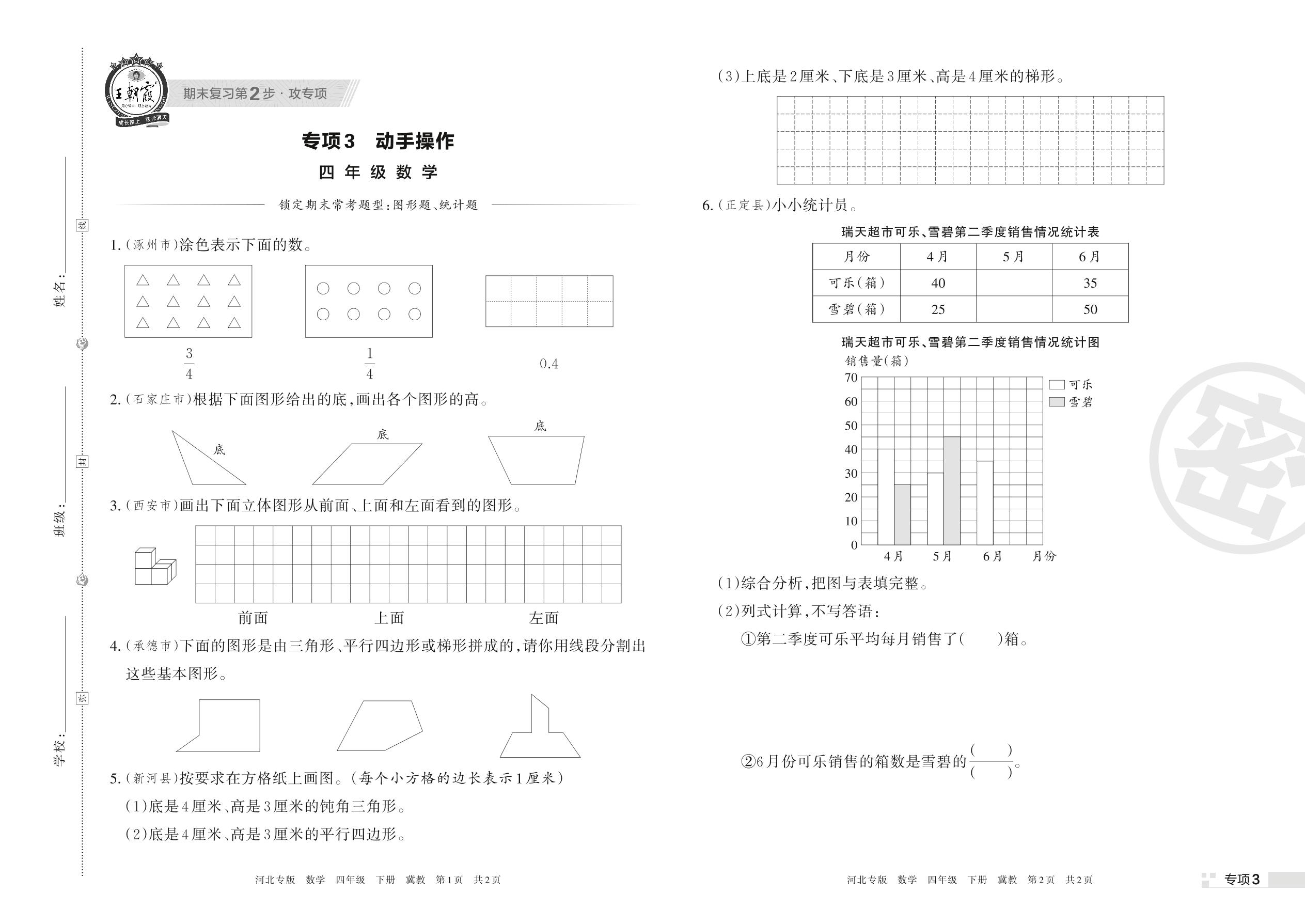 王朝霞期末专项卷——动手操作四年级下册数学(冀教版)【3】
