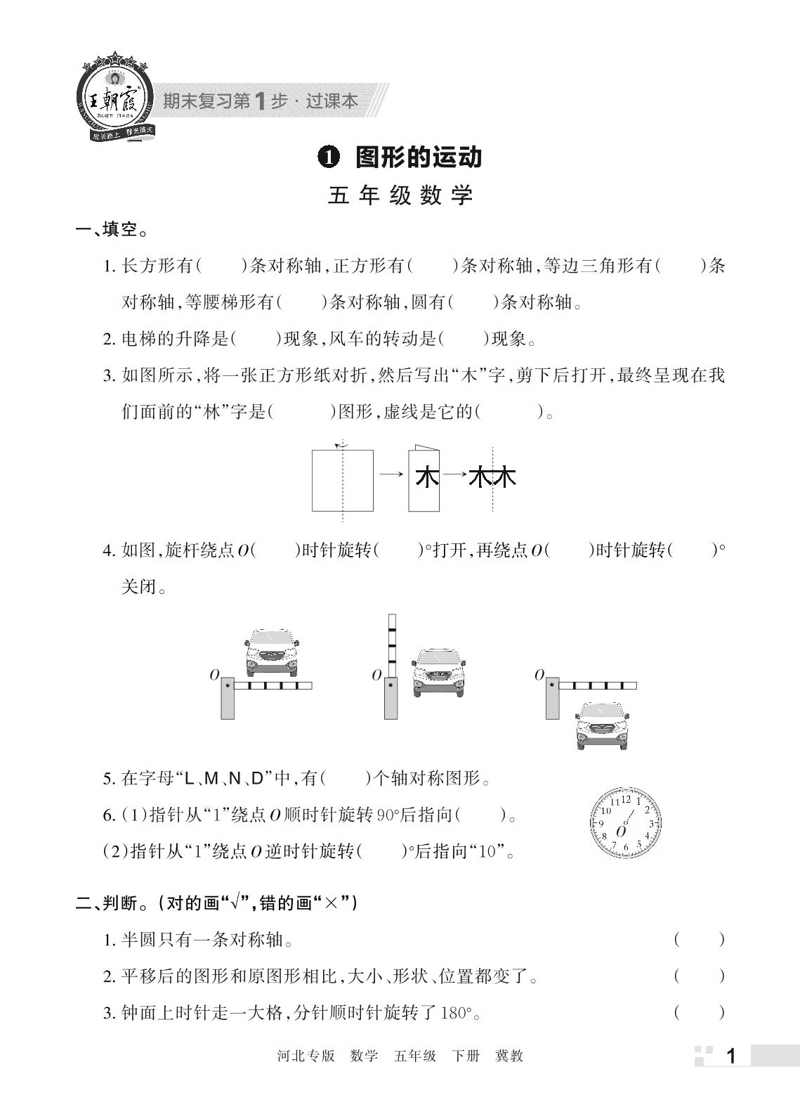 王朝霞期末过课本——1 图形的运动五年级下册数学(冀教版)