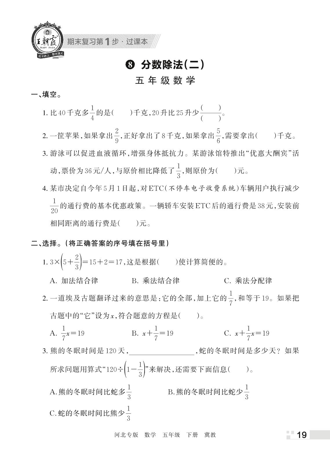 王朝霞期末过课本——8 分数除法(二)五年级下册数学(冀教版)