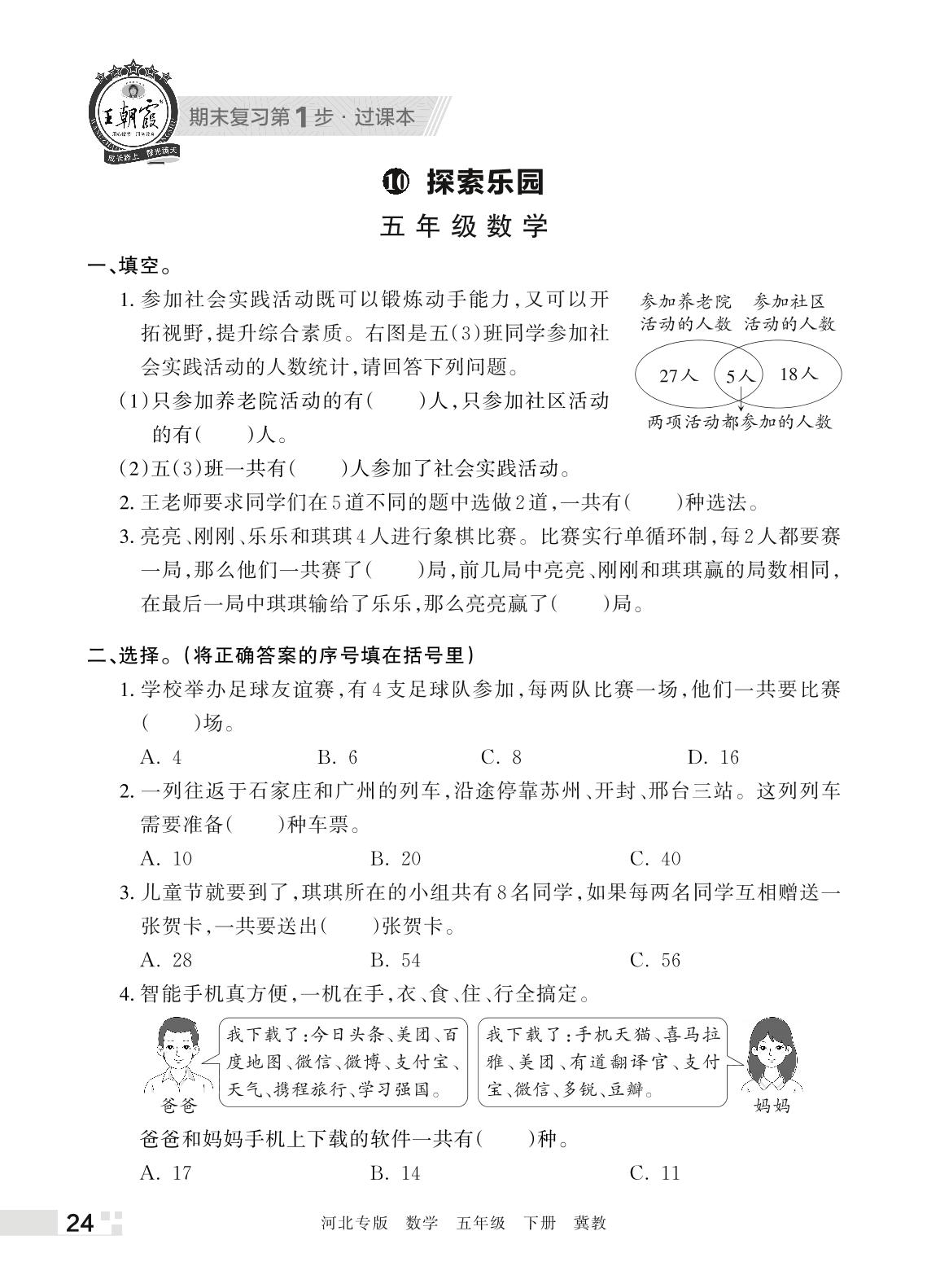 王朝霞期末过课本——10 探索乐园五年级下册数学(冀教版)