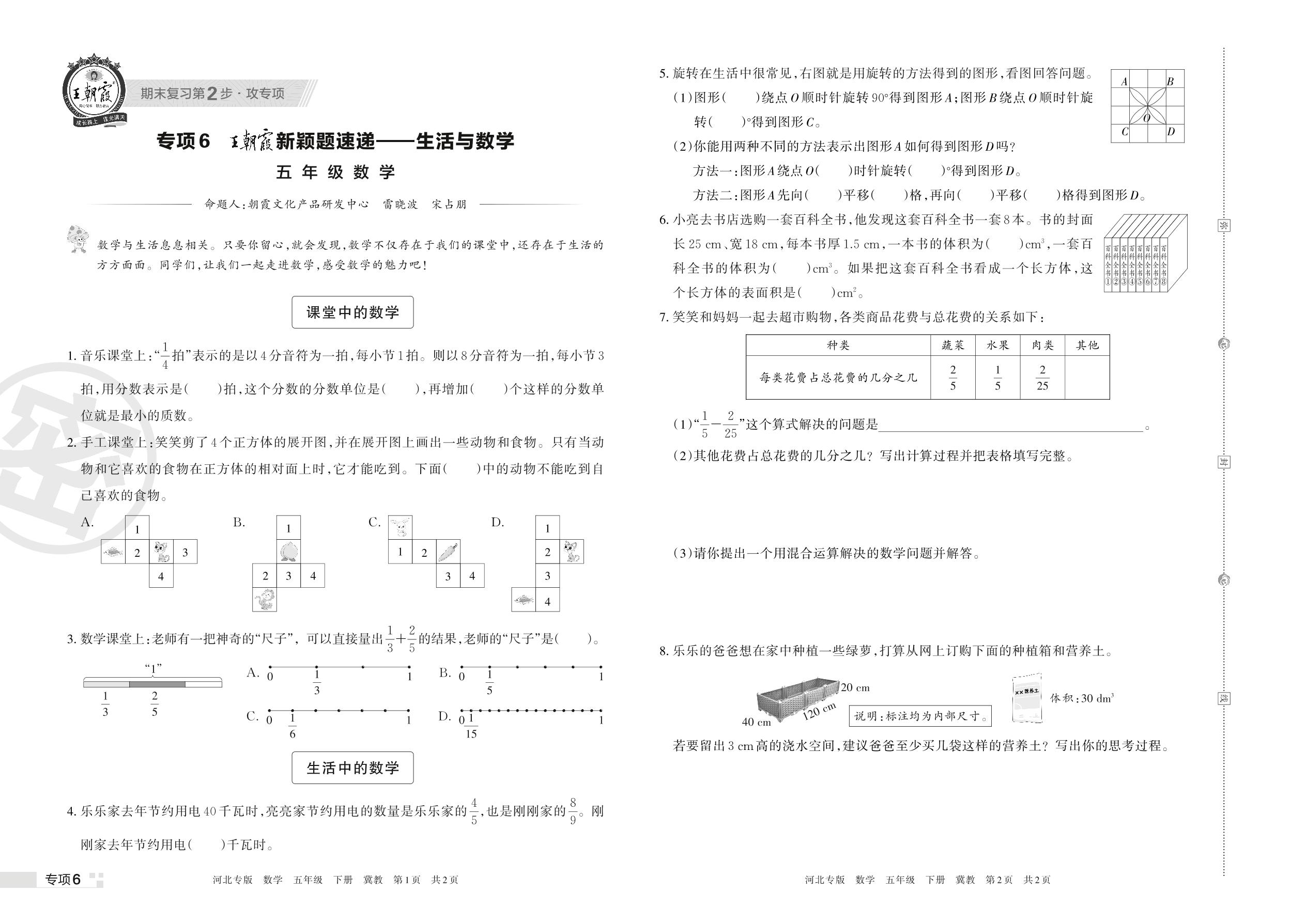 王朝霞期末专项卷——新颖题速递:生活与数学五年级下册数学(冀教版)【6】