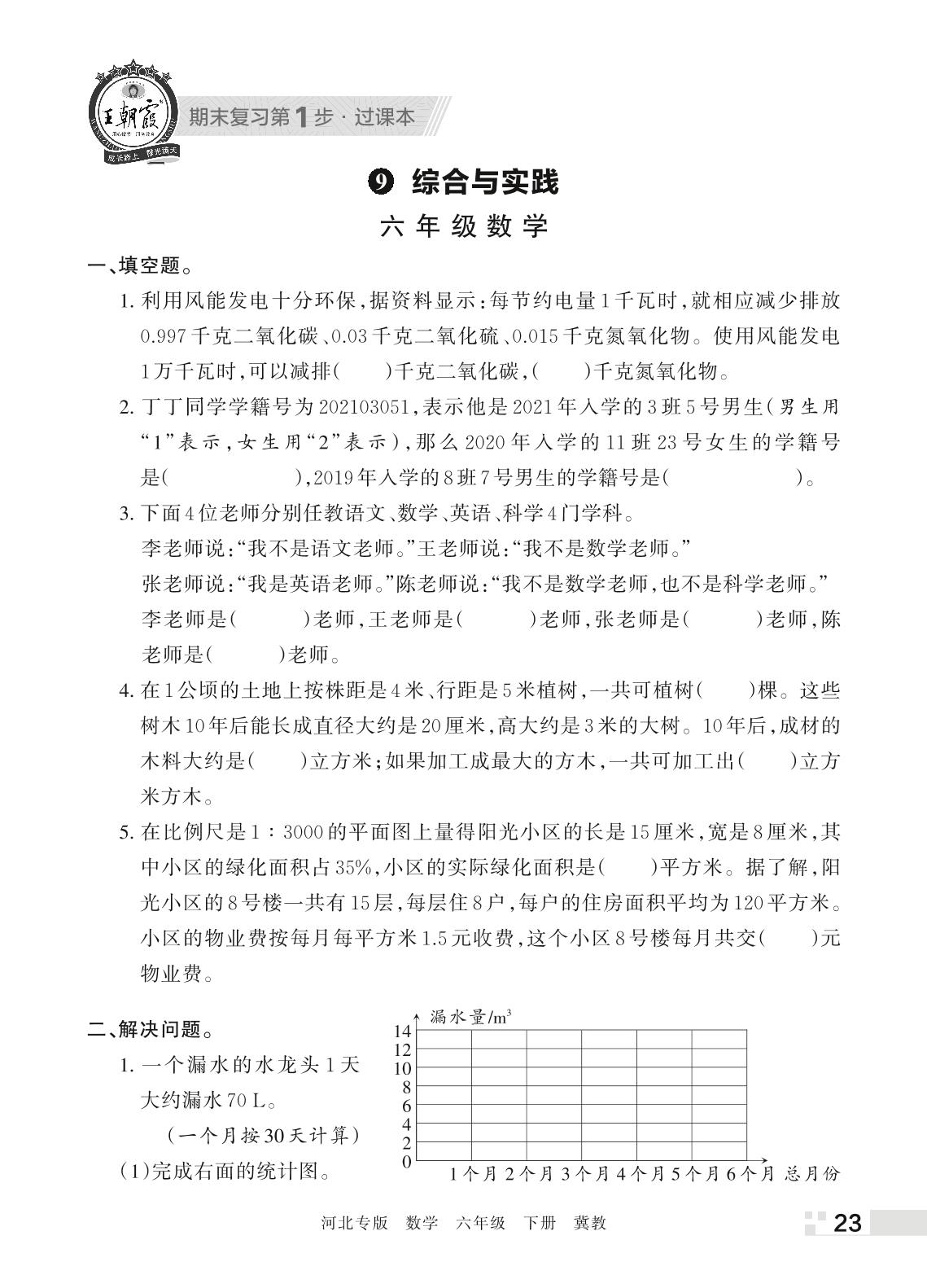 王朝霞期末过课本——9 综合与实践六年级下册数学(冀教版)