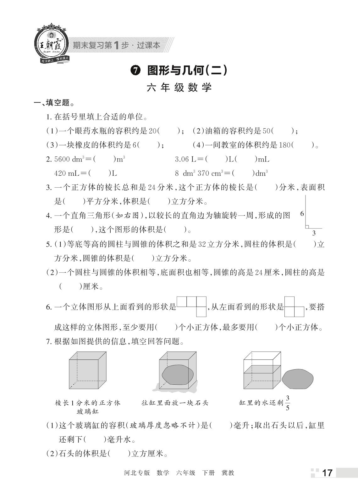 王朝霞期末过课本——7 图形与几何(二)六年级下册数学(冀教版)
