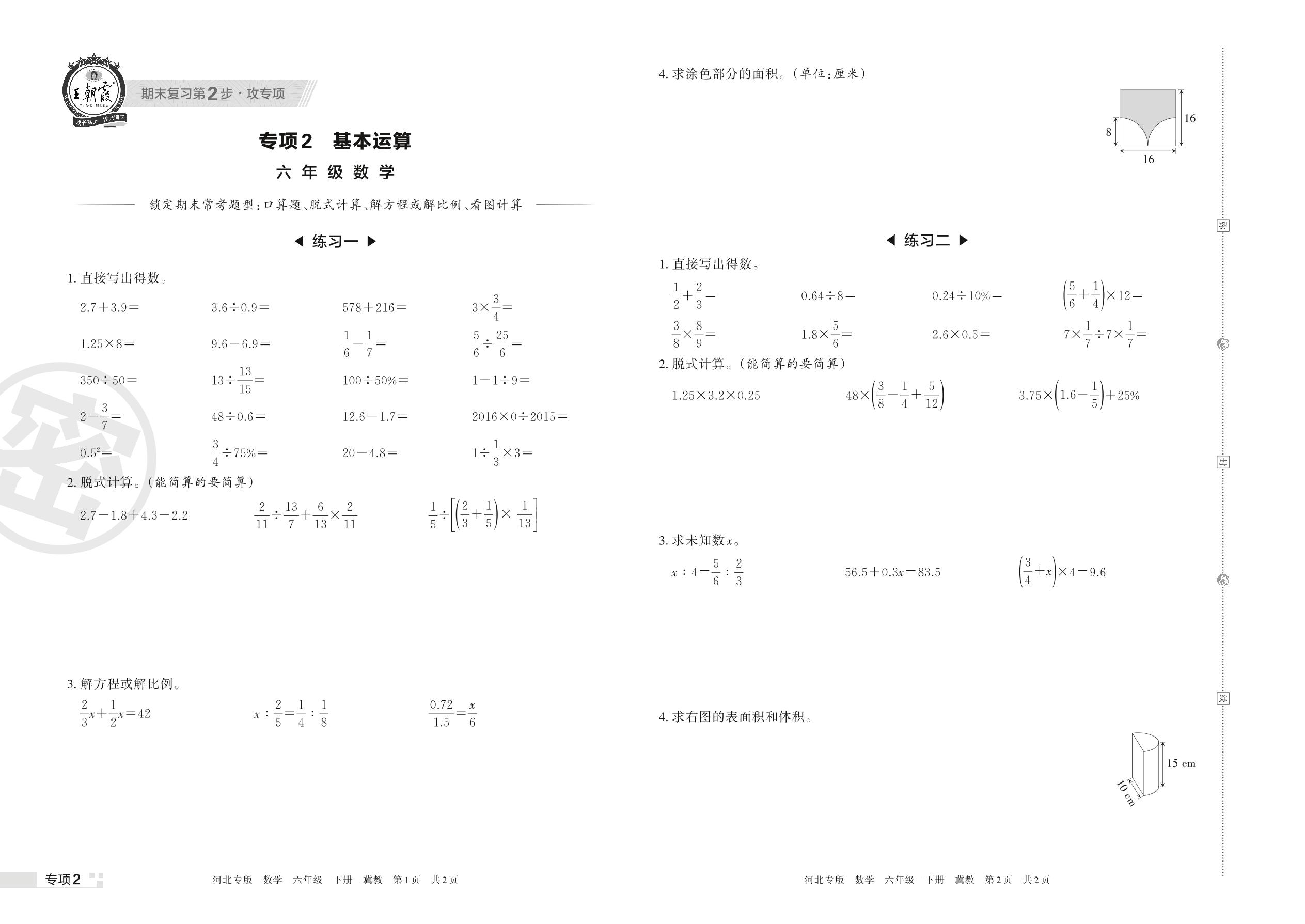 王朝霞期末专项卷——基本运算六年级下册数学(冀教版)【2】