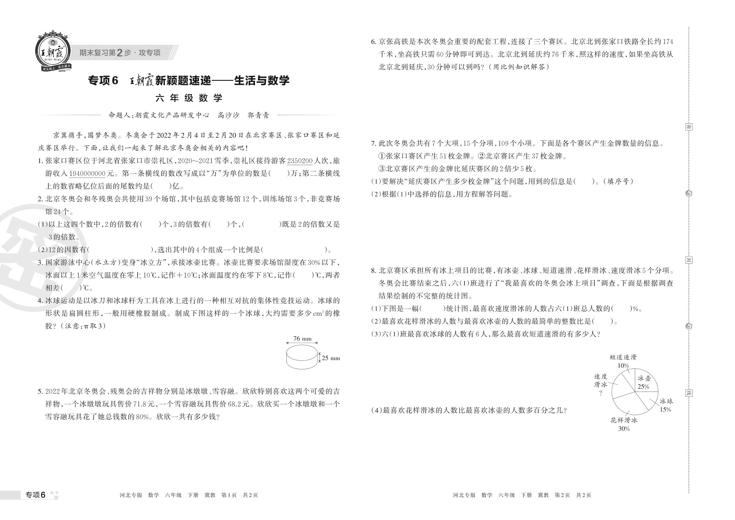 王朝霞期末专项卷——新颖题速递:生活与数学六年级下册数学(冀教版)【6】