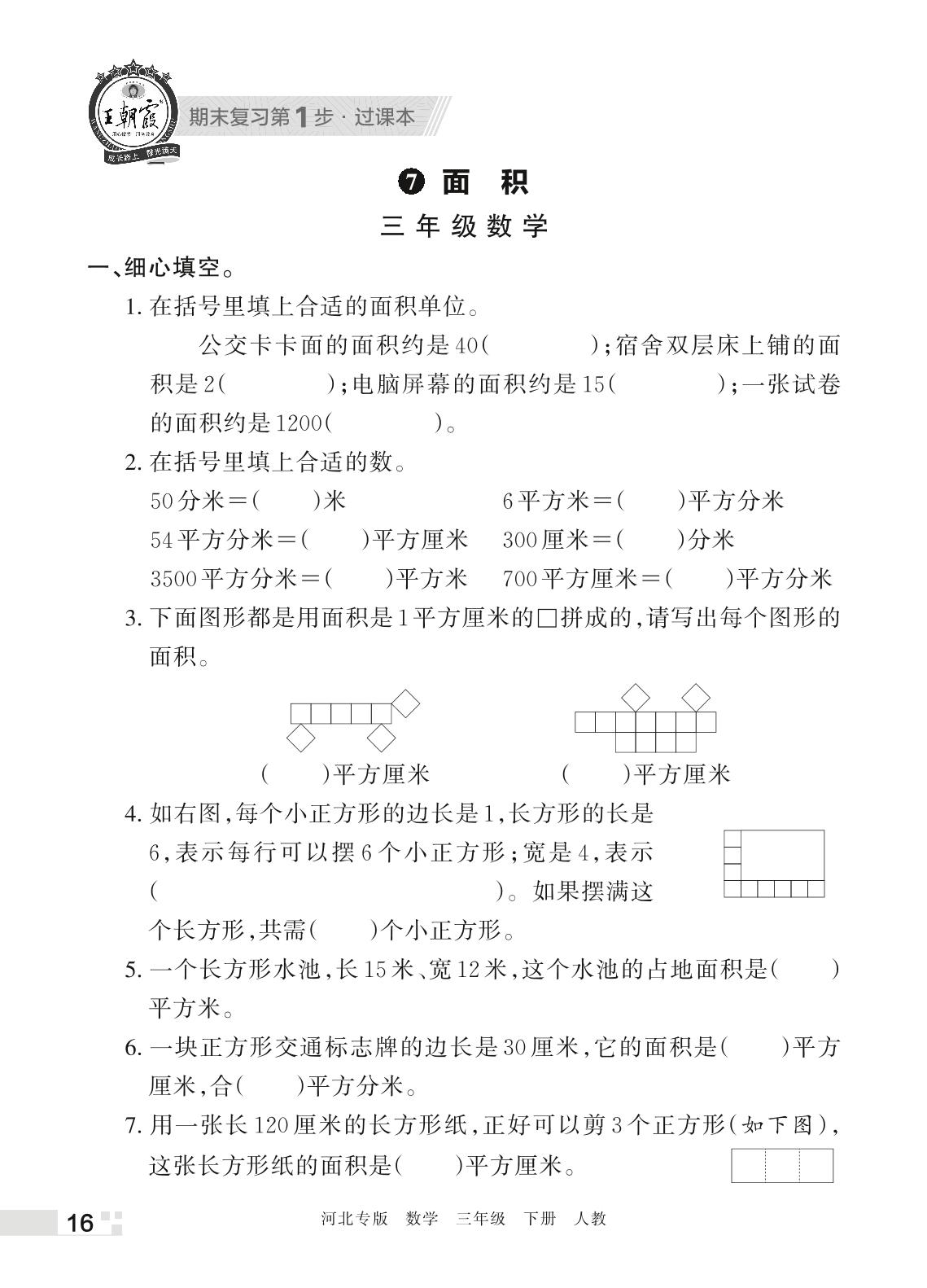 王朝霞期末过课本——7 面积三年级下册数学(人教版)